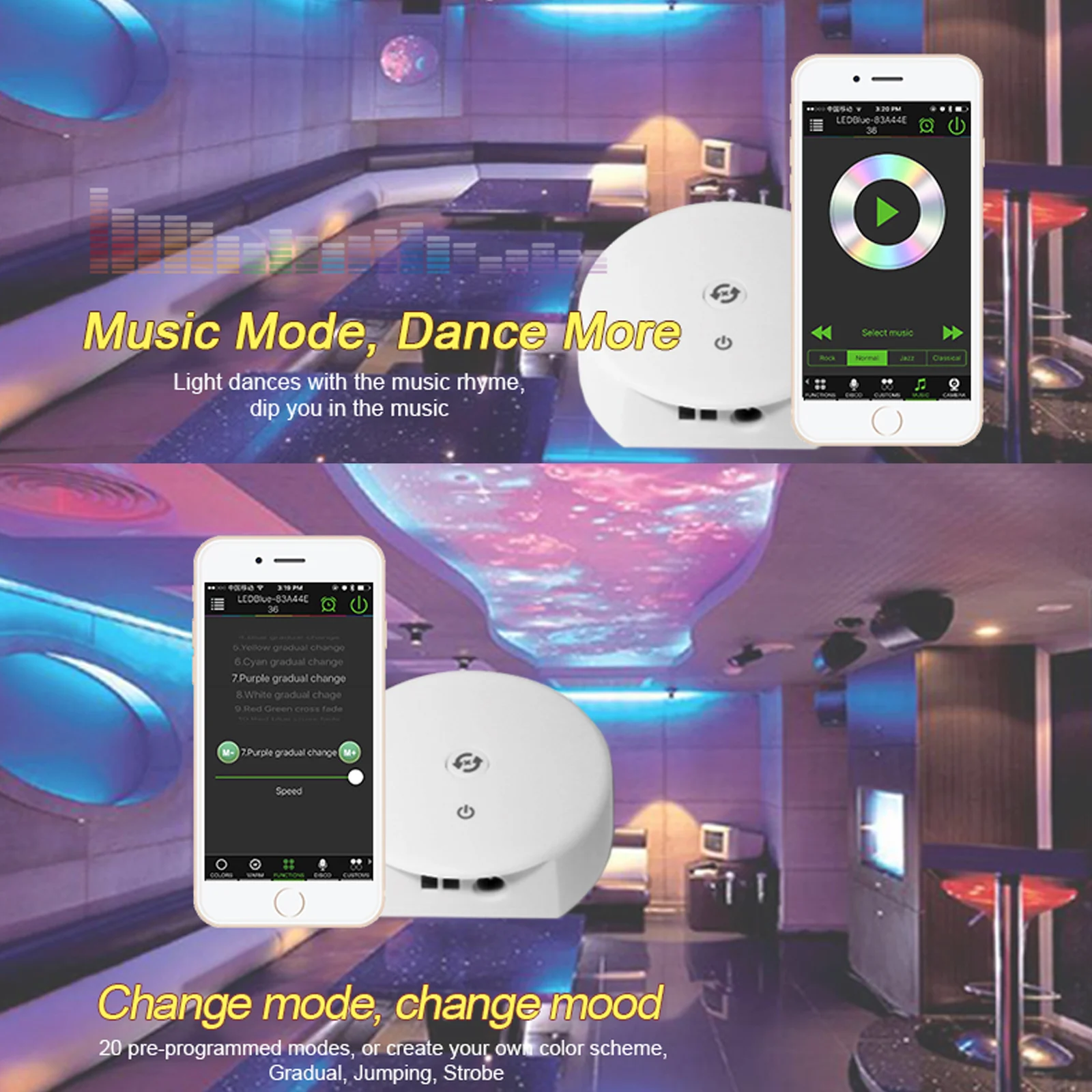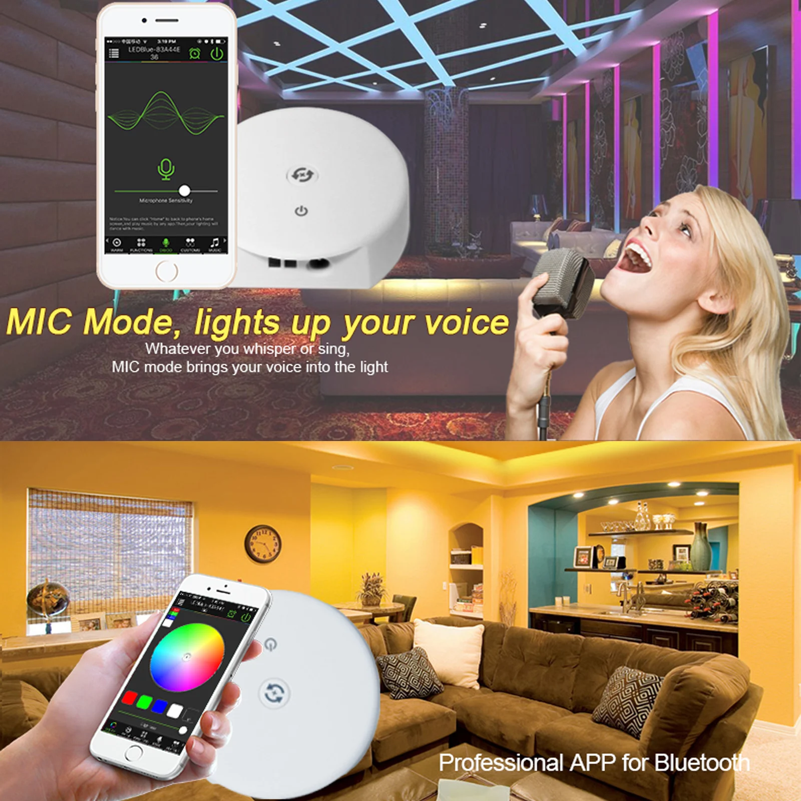 3. Синхронизация музыки и микрофон --- контроллер полосы света синхронизирует музыку на вашем смартфоне или на любой звук или музыку, снятую из внешних источников. Это здорово, если вы хотите расслабиться и расслабиться после долгого дня, сделать ваших детей перед сном приятным опытом или помочь начать эти вечерние мероприятия.