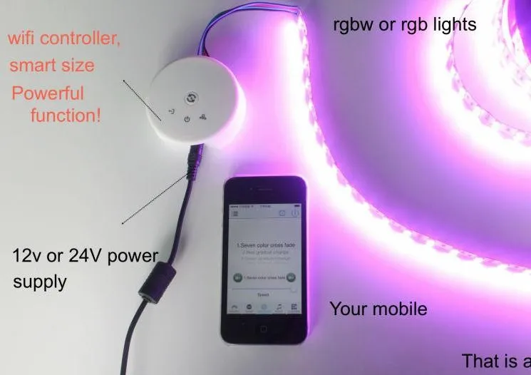 2. Применение --- этот контроллер является дизайном, для детей возрастом от 12V-24V светодиодный полосы освещения. Вы можете обновить устаревшие полосы света. За исключением простой установки и настроек, вы можете использовать свой телефон (IOS 6,0 или Android версии 4,3 или выше) для управления. Расстояние дистанционного управления может достигать 30 м.