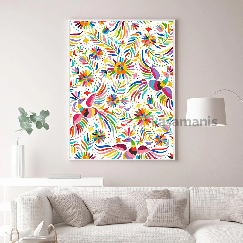 Otomi индийский мексиканский народный художественный холст, плакат для детской стены, художественная живопись, принт, украшение в виде Мексики, картина, домашний декор, подарок путешественнику