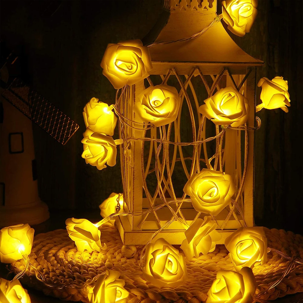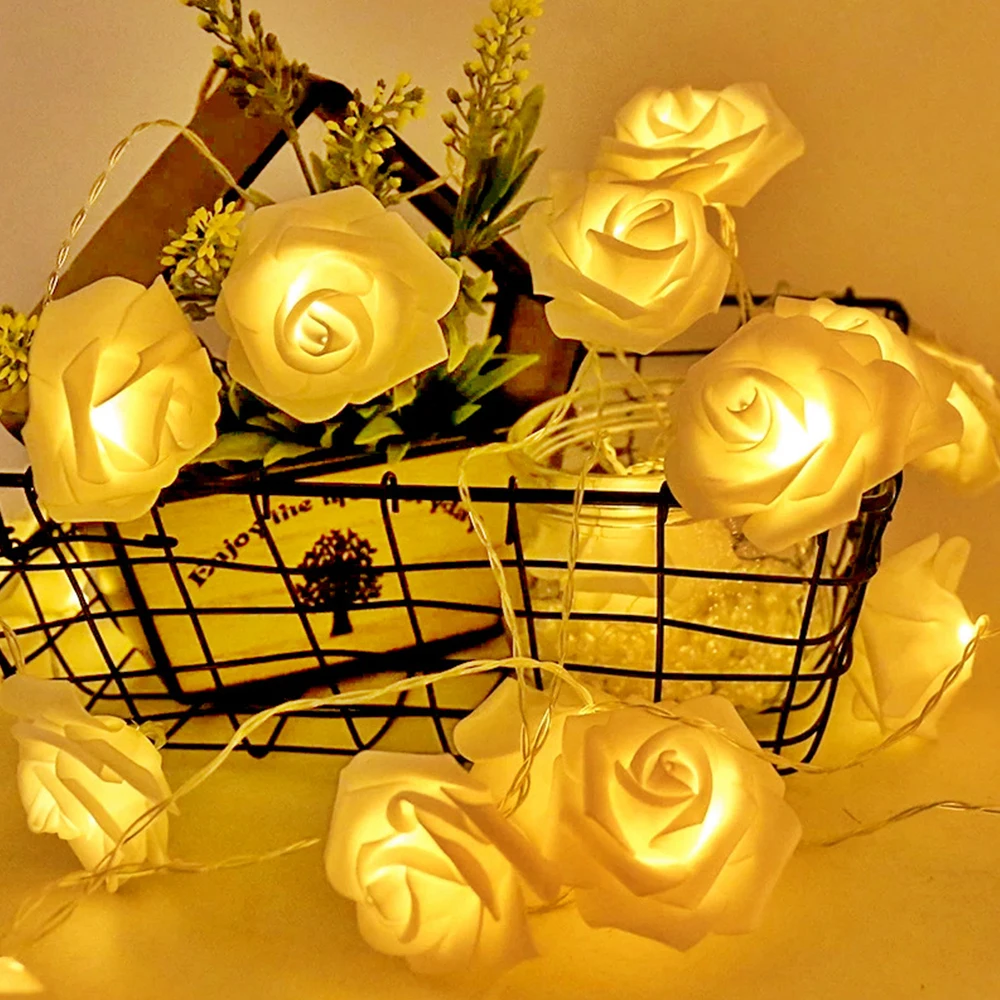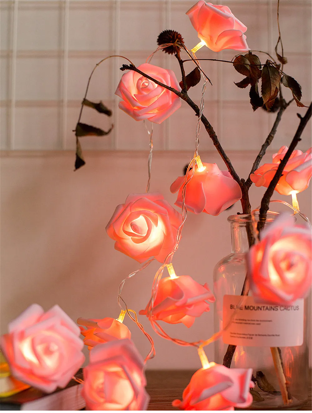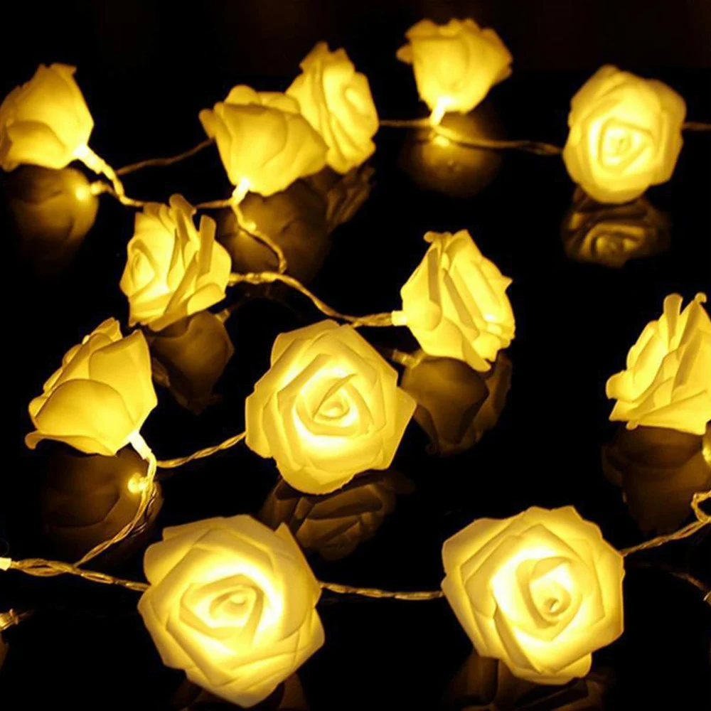 Гирлянда с 10 светодиодами и 20 светодиодами в виде роз, гирлянда с питанием от батарейки для украшения свадьбы, Рождества, Дня Святого Валентина, праздвечерние