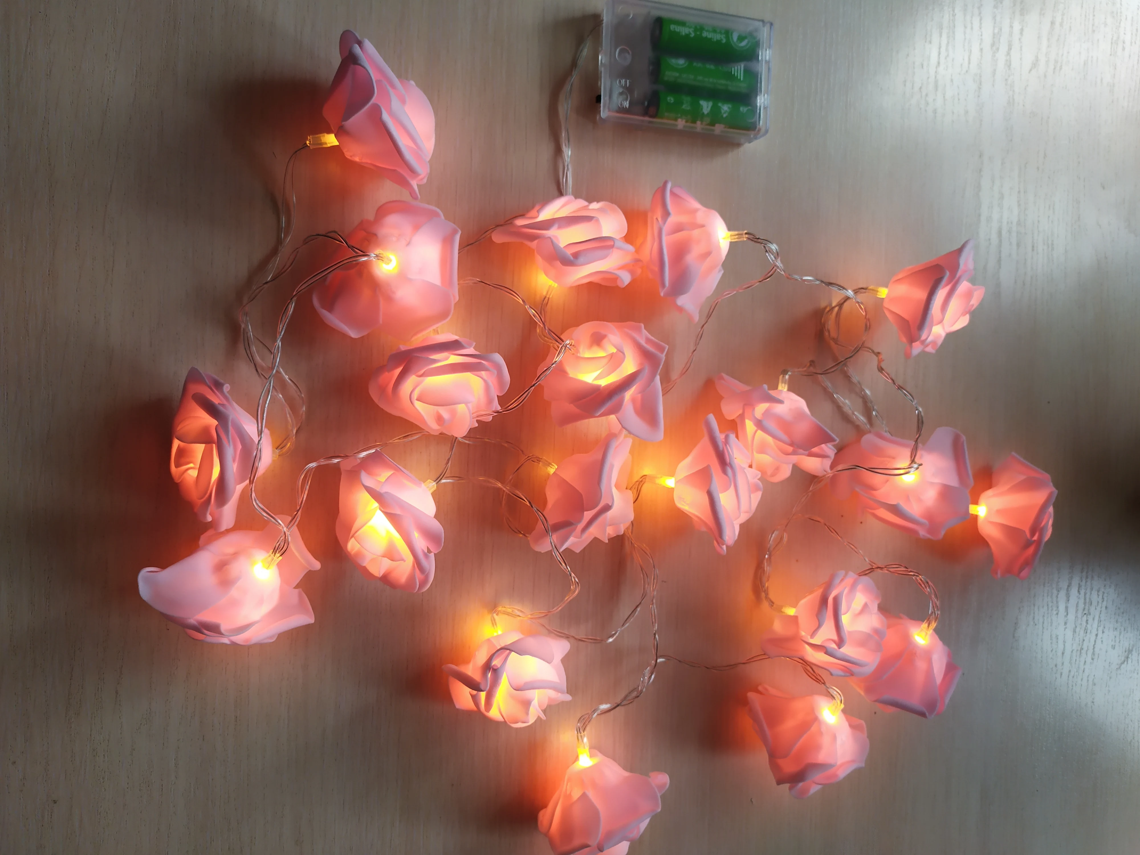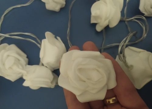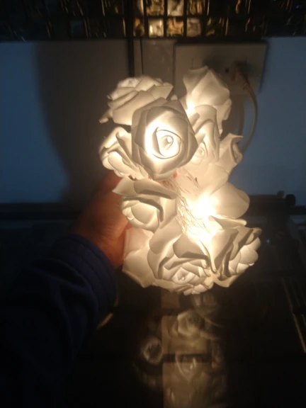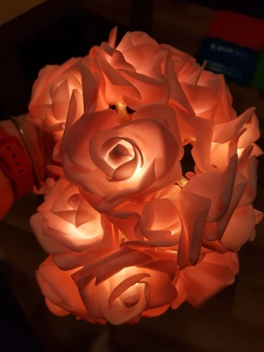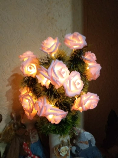 Гирлянда соответствует описанию. Розы сделаны из фоамирана, очень приятные на ощупь :) Продавец быстро отправил, посылка дошла Новой почтой за 12 дней в Украину, что, на мой взгляд, очень быстро. Спасибо, рекомендую :)