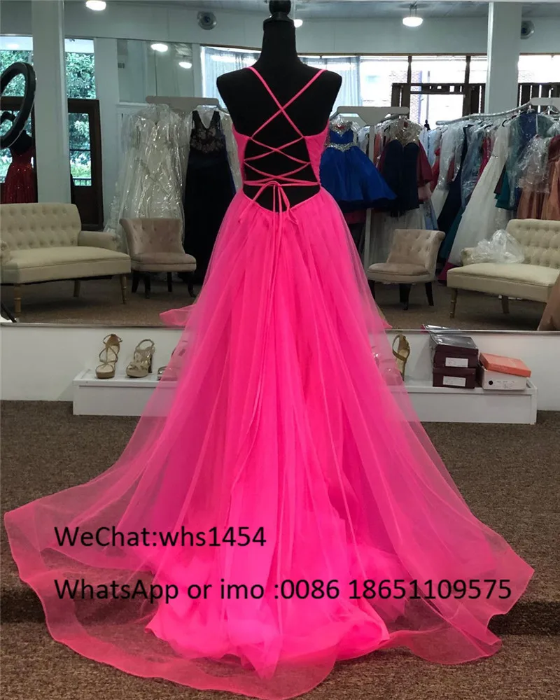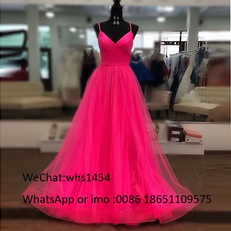 Платье для выпускного вечера Mbcullyd, сексуальное длинное Тюлевое платье цвета фуксии на тонких бретелях, ТРАПЕЦИЕВИДНОЕ вечернее платье, новинка 2020