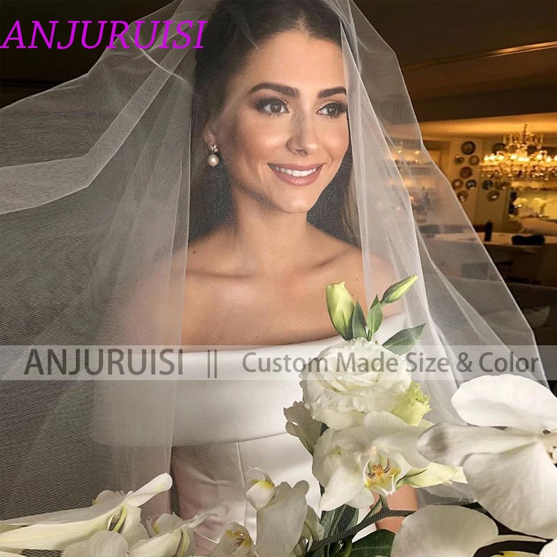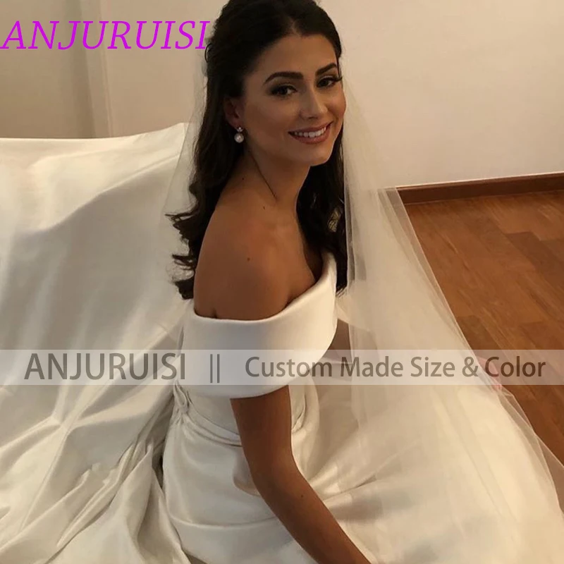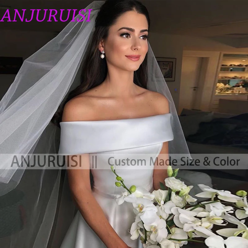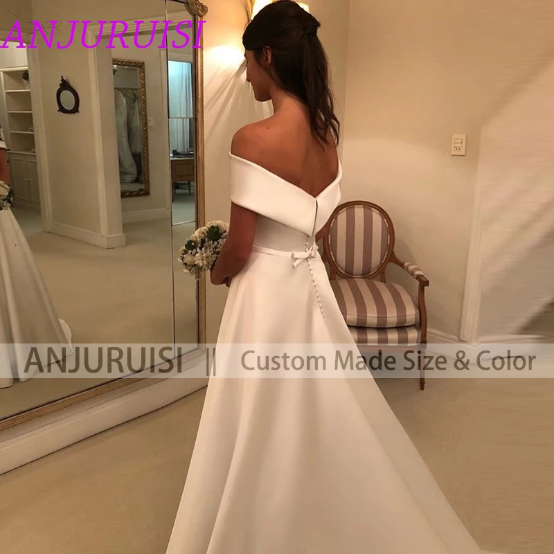 Женское атласное свадебное платье ANJURUISI, простой трапециевидный пояс, с открытыми плечами, на молнии, со шлейфом, с пуговицами, 2020