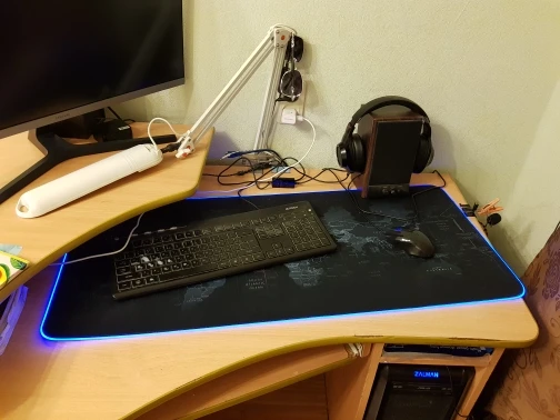 Сыну очень понравился. На большой стол очень неплохо. Но обязательно нужно замерять размер столешницы, если будет свисать со стола будет некрасиво. Подсветка красивая, есть статичные и динамичные режимы.