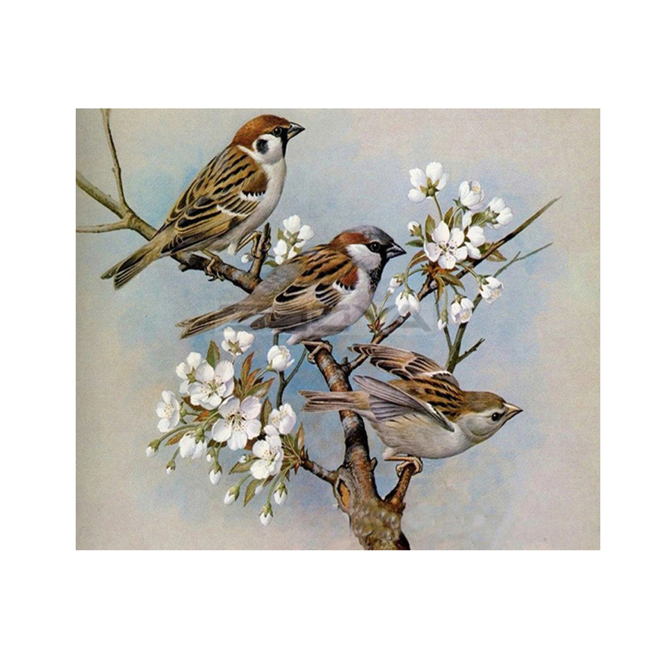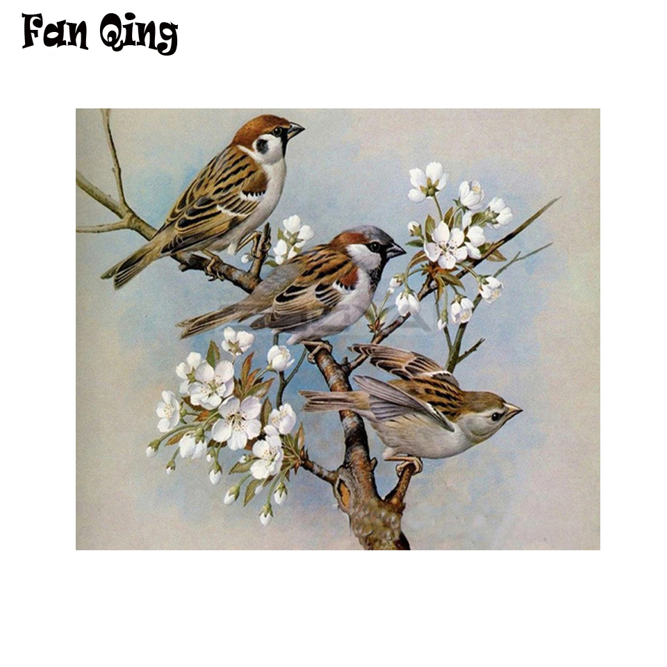 5D Diy алмазная живопись воробей и с вышивкой и цветочным принтом, изображение круглый квадратная Мозаика из страз, вышитая бисером Арт Декор для дома