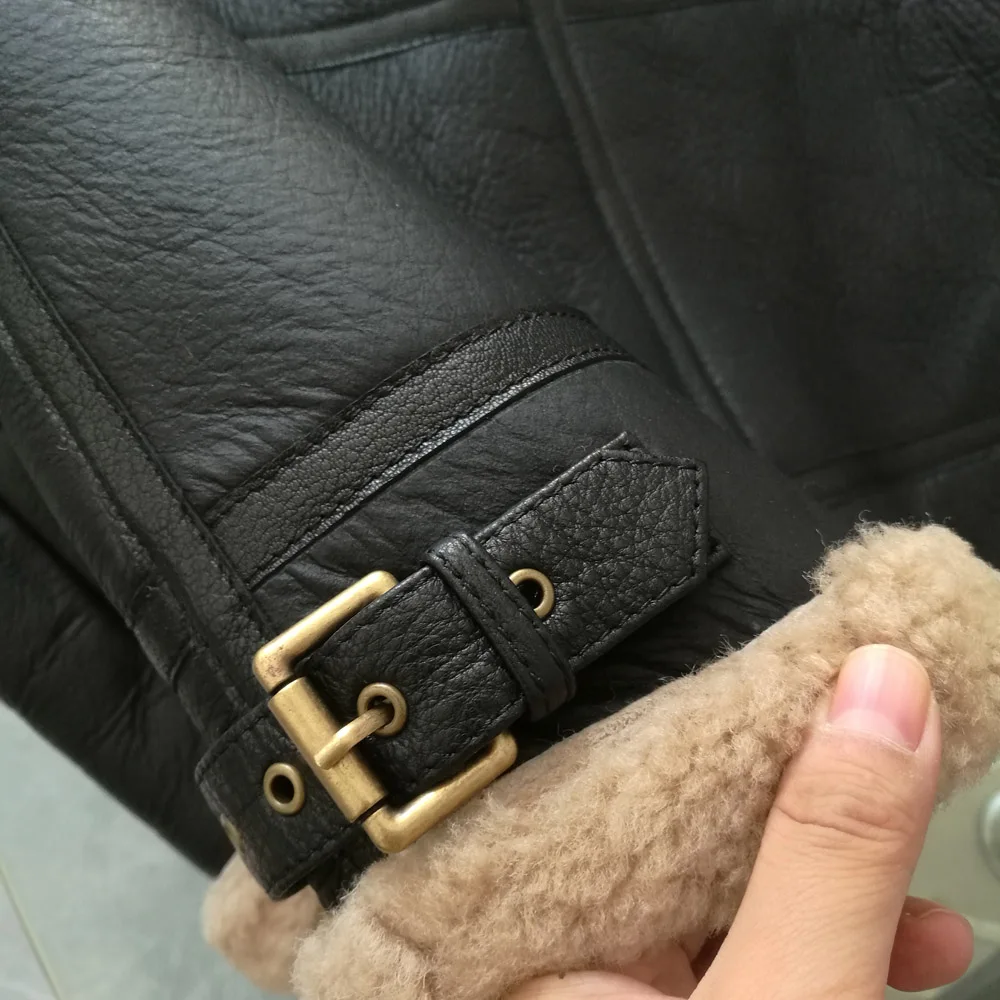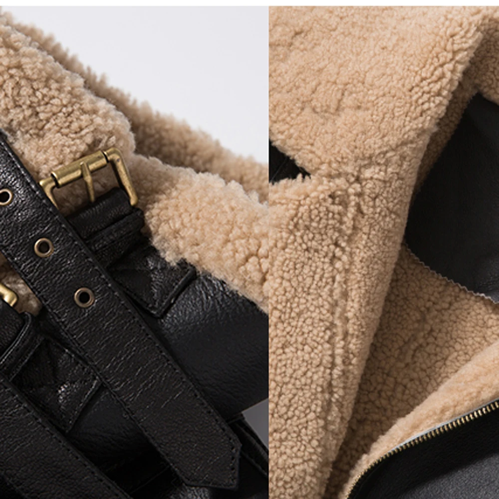 LUHAYESA модная Высококачественная овчина мех овчины куртка черная Толстая натуральная кожа тонкая теплая зимняя меховая куртка