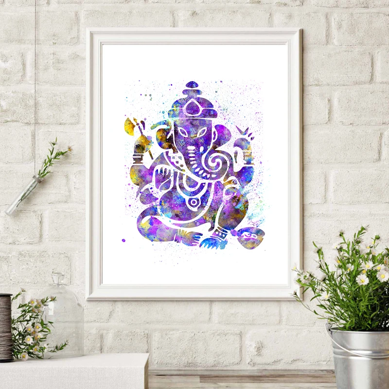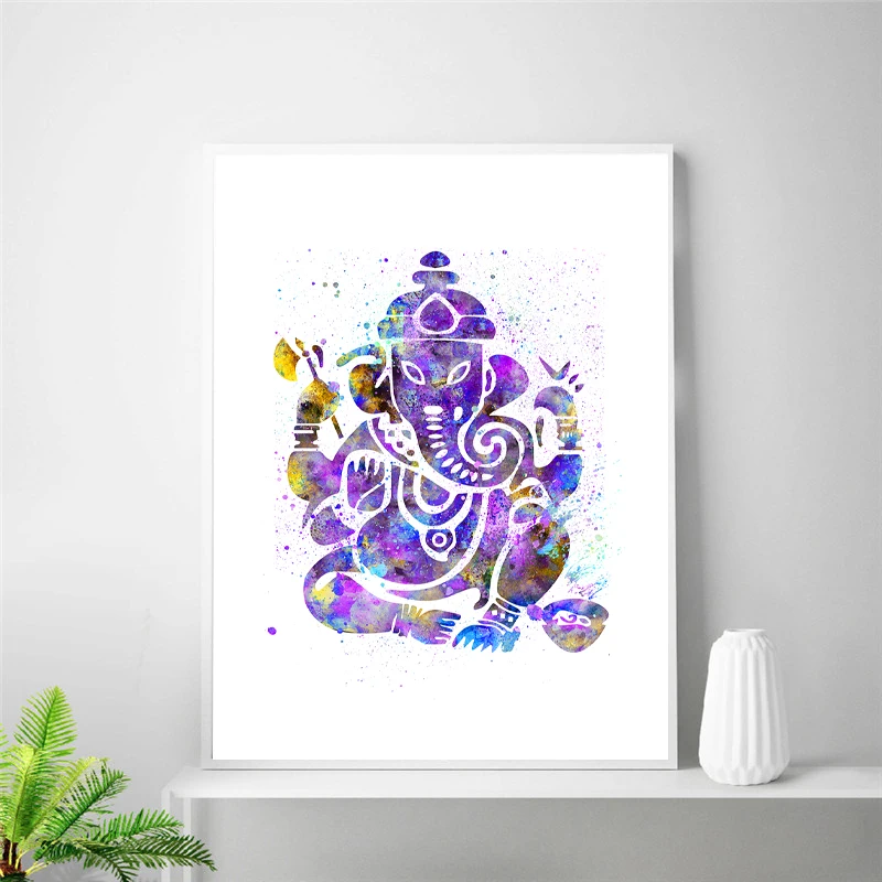 Ганеш Индийский Бог акварель Йога плакат духовное искусство стены холст живопись медитация печать декоративная картина дзен домашний декор