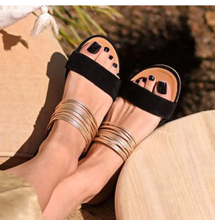 2020 новые женские сандалии; Модная женская обувь; Однотонные сандалии на плоской подошве; Пляжная обувь без застежки; Повседневная обувь; Zapatos Mujer