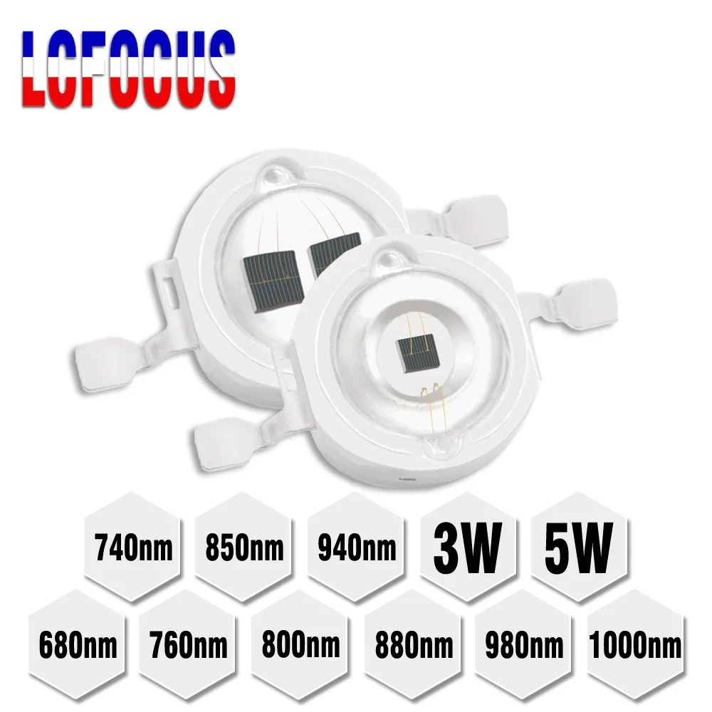 Высокомощный светодиодный чип IR Инфракрасный 3 Вт 5 Вт 680 нм 740нм 800нм 850нм 880нм 940нм 980нм излучатель Диодная лампа для камеры ночного видения