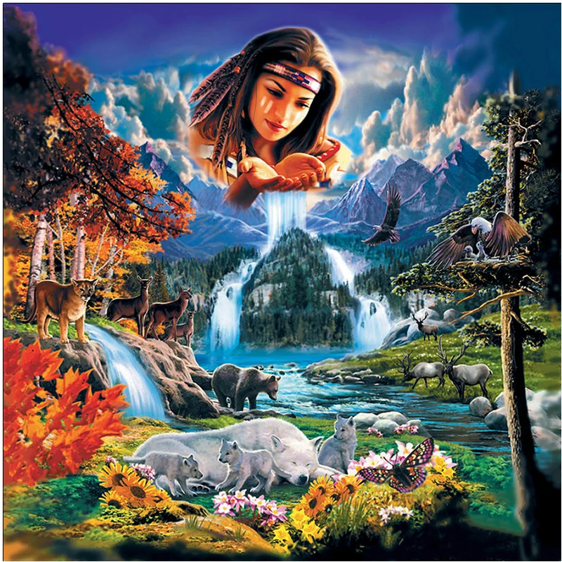 5D Diy алмазная живопись индийские женские водопад камни в форме ромба круглый дрель Животные медведь волк Орел 5D Вышивка крестом StitchZP-3090