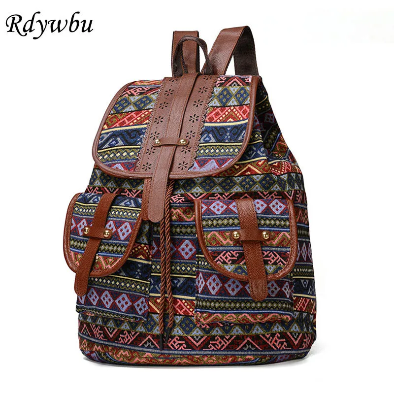 Национальный холщовый рюкзак для женщин, винтажный вместительный дорожный рюкзак для девочек, школьный рюкзак на шнурке для книг, женский рюкзак, Mochila B800