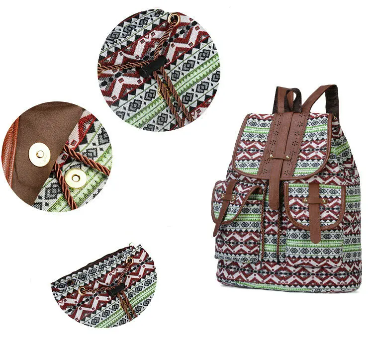 National Ethnic Backpack MaterialCanvas, PU Leather
