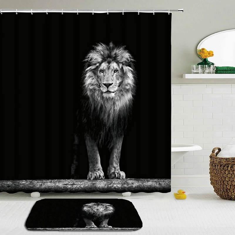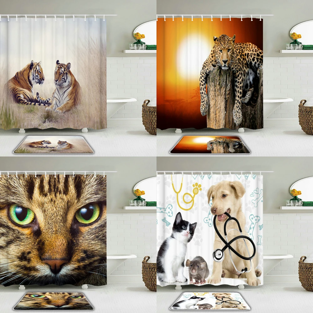 Занавеска для ванной с изображением Льва, тигра, кота, собаки
