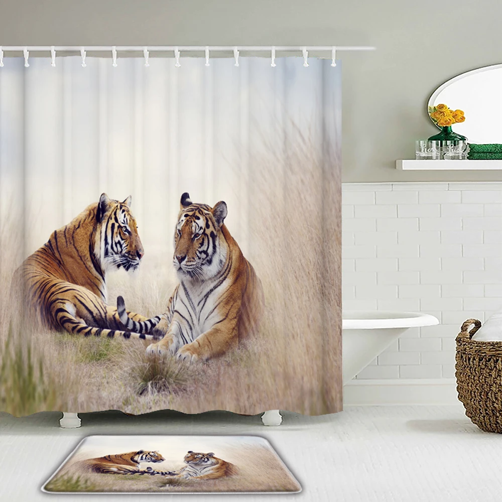 Набор штор для душа с тигром, декор для ванной комнаты в стиле дики...