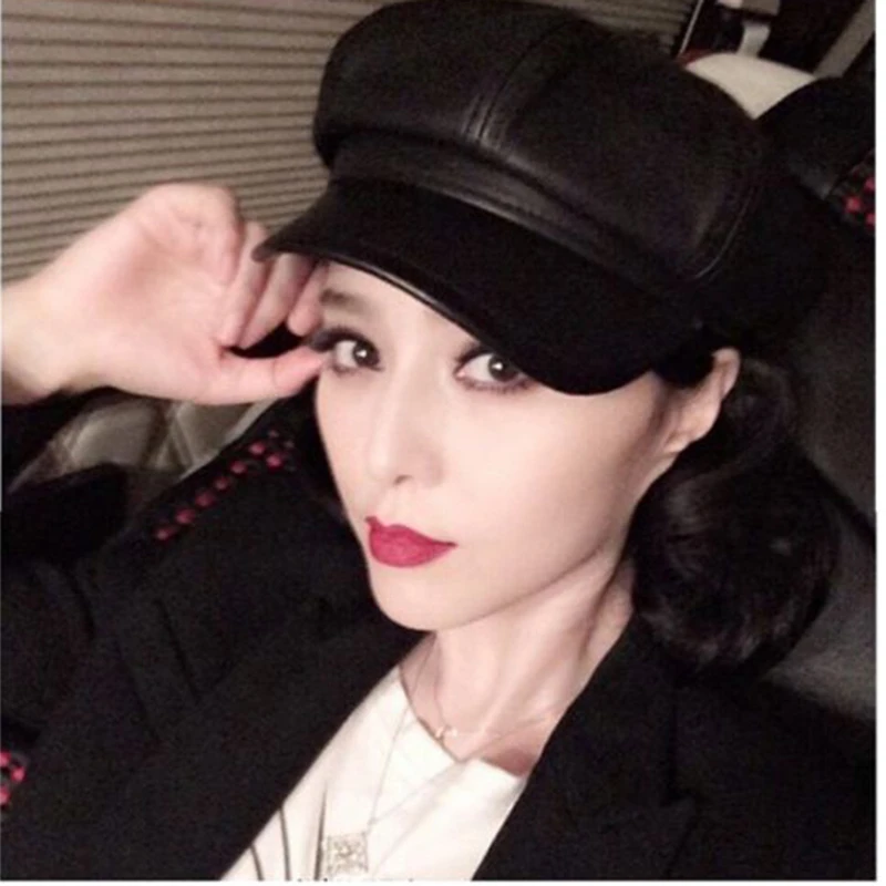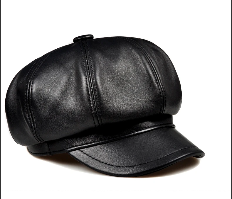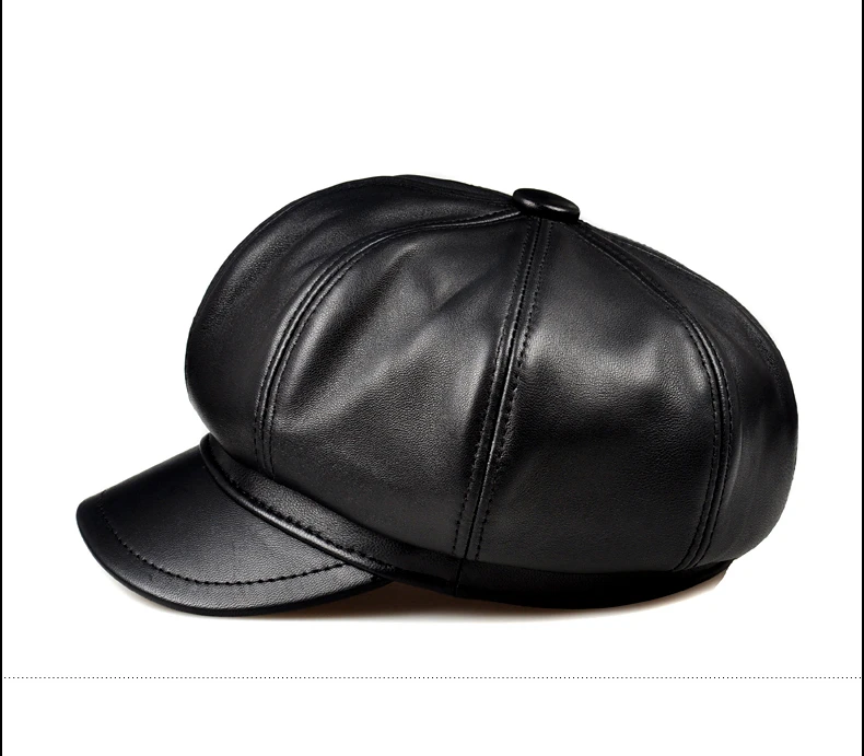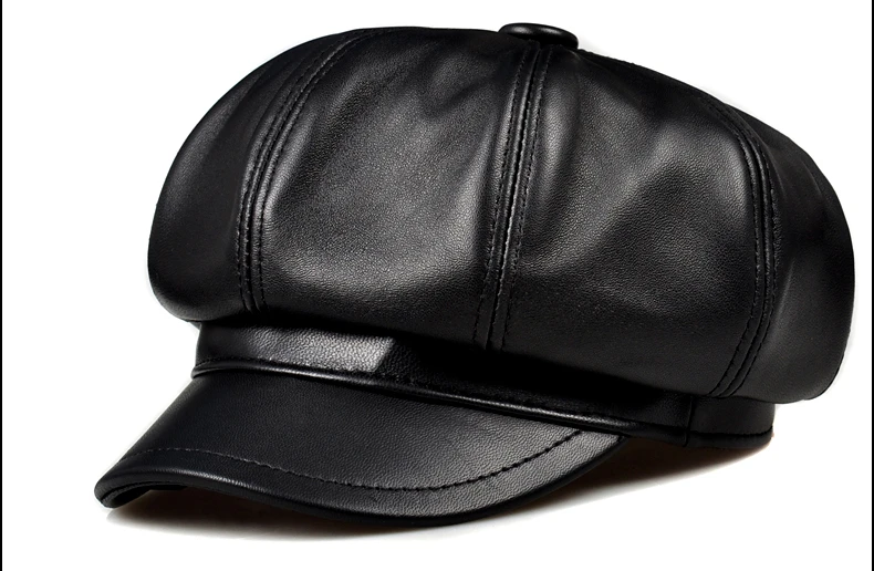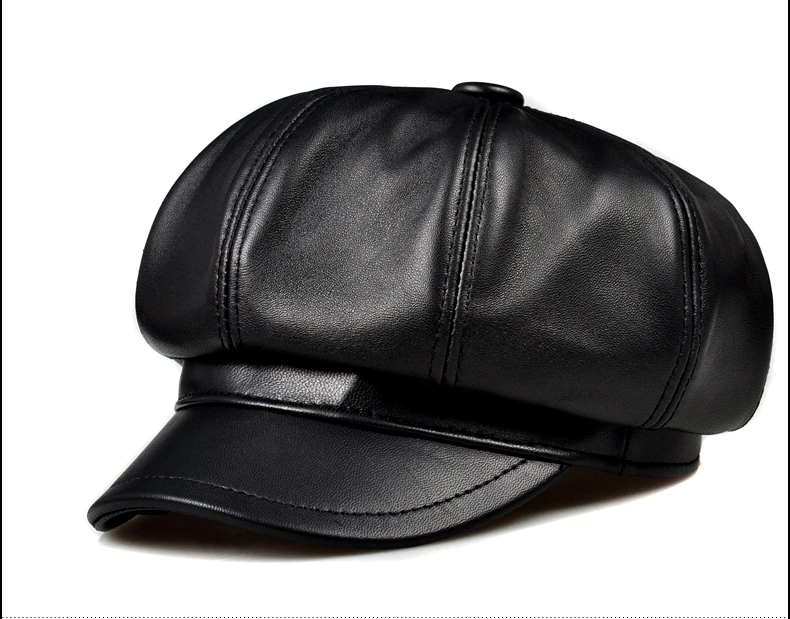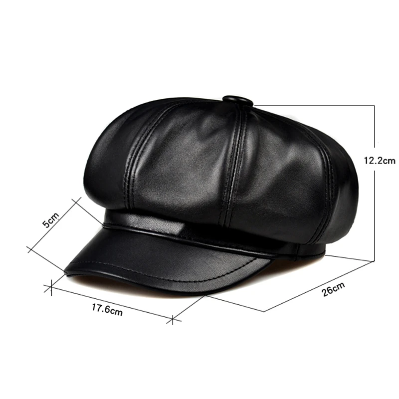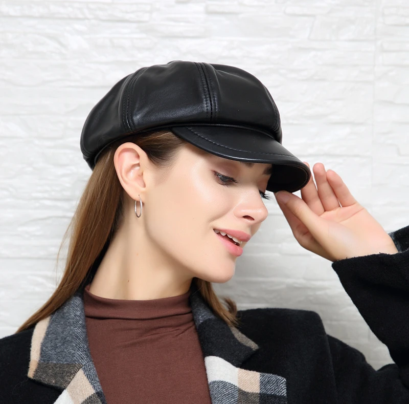 Берет из натуральной кожи зимние весенние шапки для женщин Кепка художника газетчика берет в стиле винтаж женская черная шляпа в английском стиле