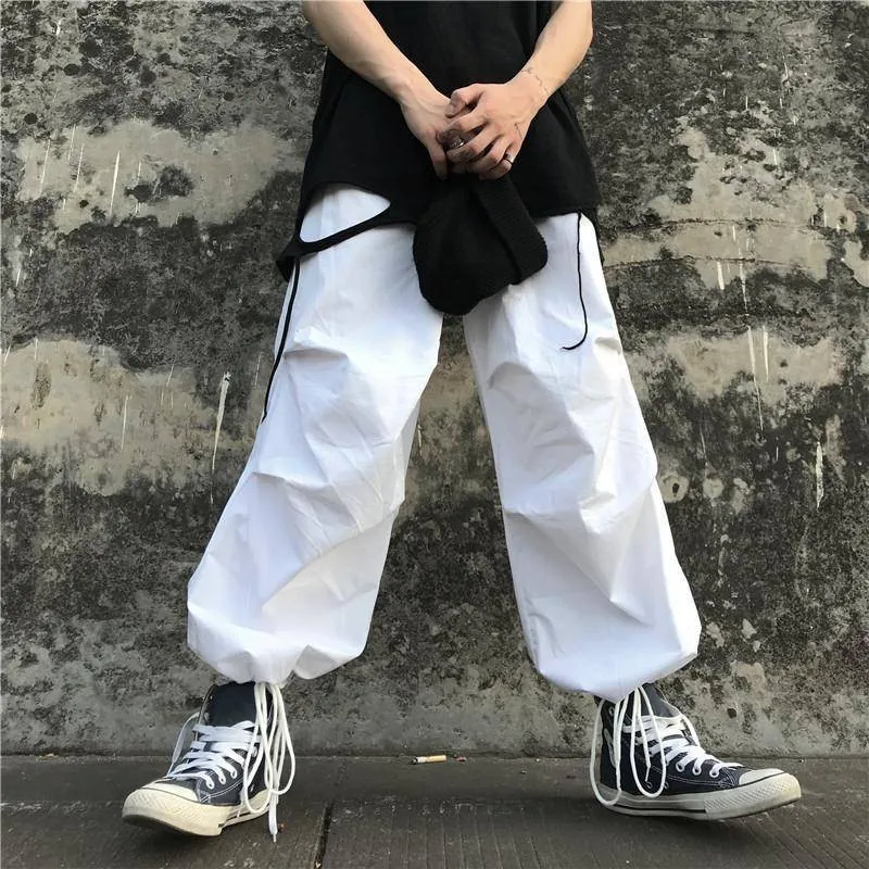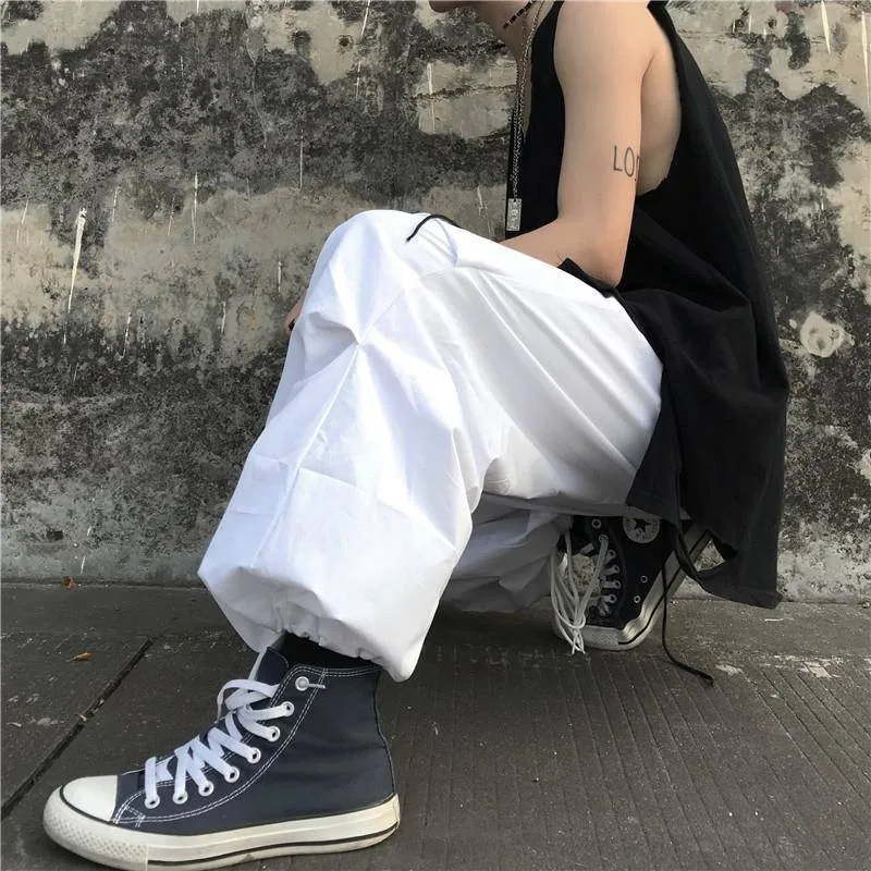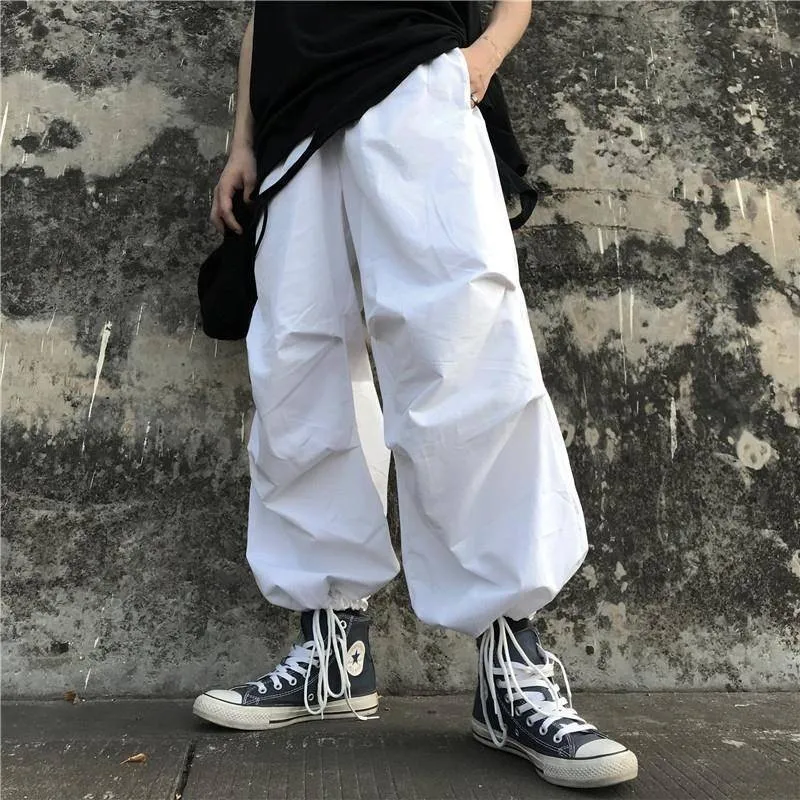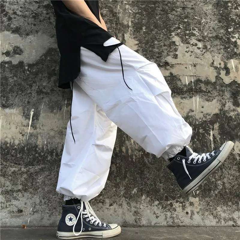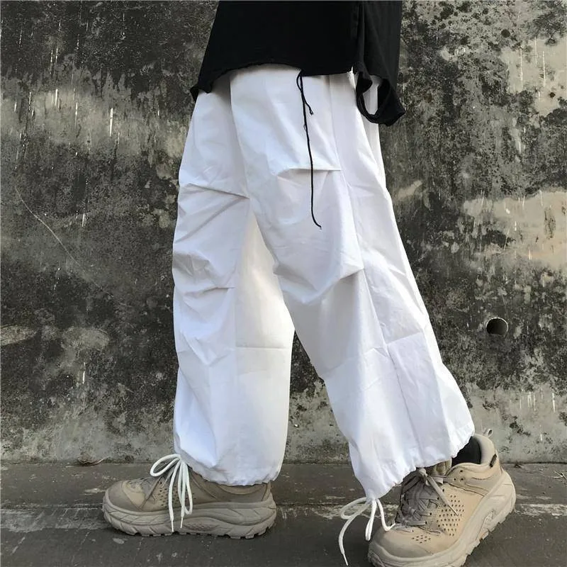 Брюки женские с широкими штанинами, уличная одежда в Корейском стиле, Свободные повседневные длинные капри с эластичным поясом и карманами, белые