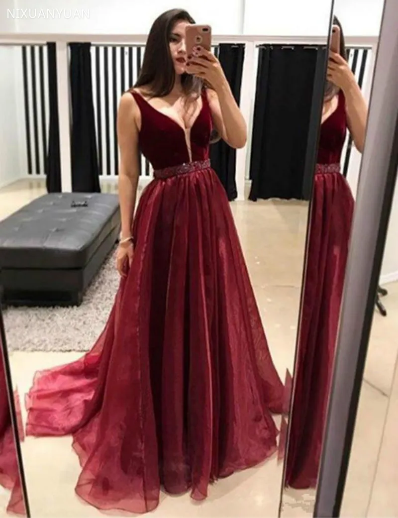 Бордовое платье для выпускного вечера, 2021, длинное, ТРАПЕЦИЕВИДНОЕ, вельветовое, с бисером, официальное, вечернее платье