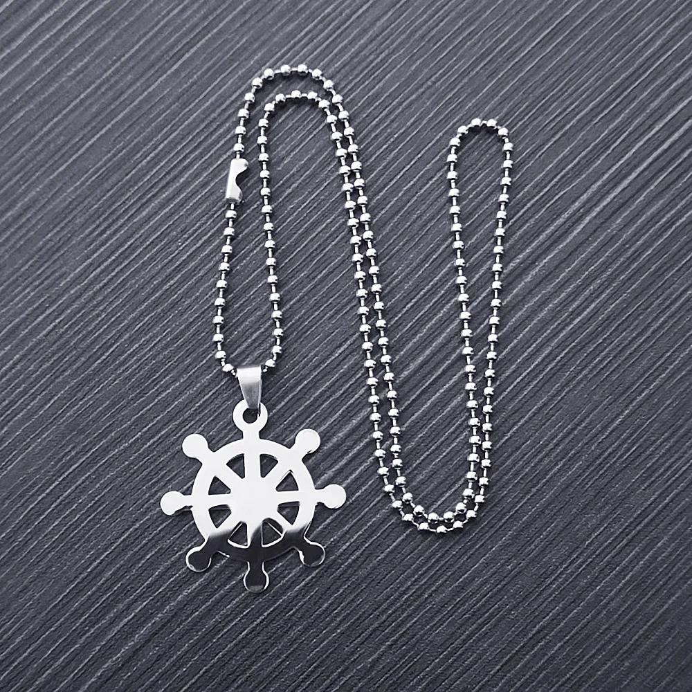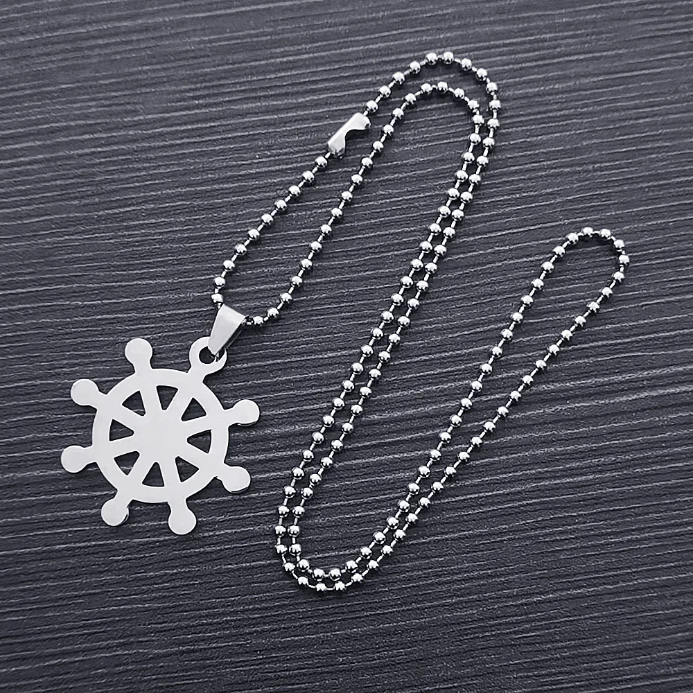 Бесплатная доставка 2024 "цепочка серебряного цвета из полированной нержавеющей стали Dharma Wheel Amulet ожерелье для мужчин и женщин ювелирные изделия подарок