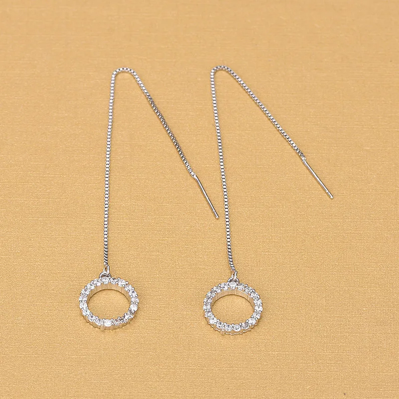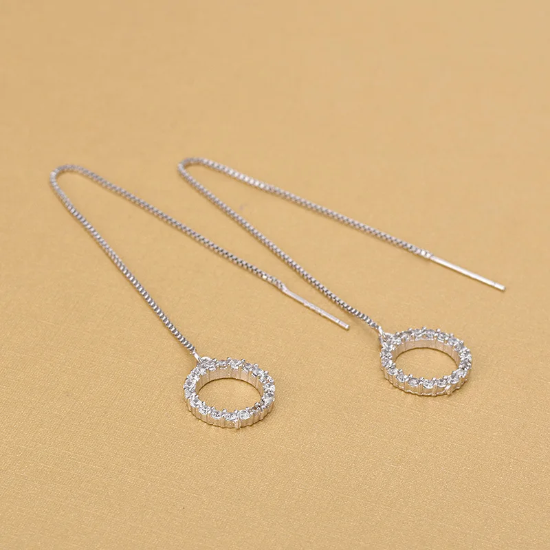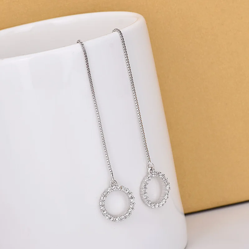 Модные простые элегантные 925 пробы Серебряные Круглые длинные серьги с кристаллами, ювелирные изделия для помолвки, подарки