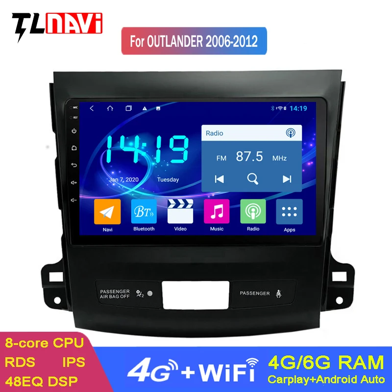 Автомобильный радиоприемник для Mitsubishi Outlander 128-2006, Android 10, 6 ГБ + 2012 ГБ, IPS-экран, 9-дюймовый GPS-навигатор