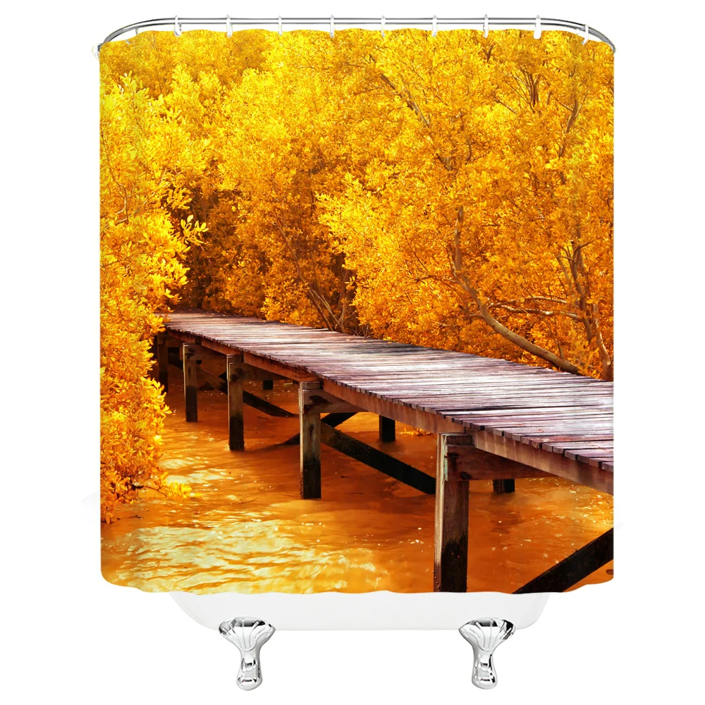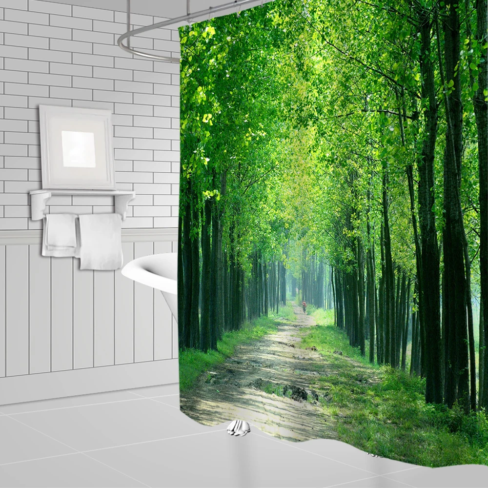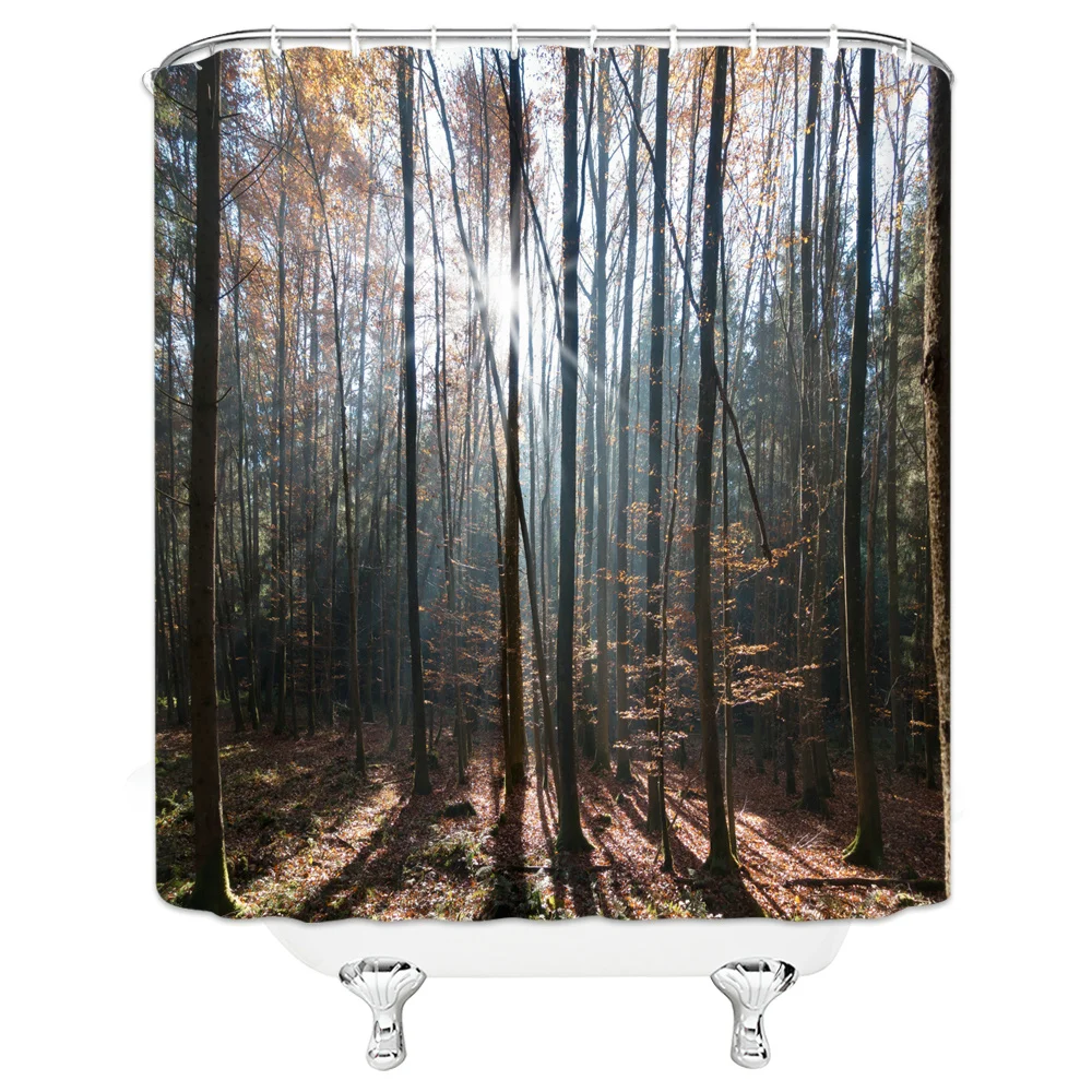 ЛЕС ДЕРЕВЬЯ водонепроницаемый экран для ванной, занавески для душа листья пейзаж ванная комната занавеска для полиэстер ткань Ванная комната Домашний декор