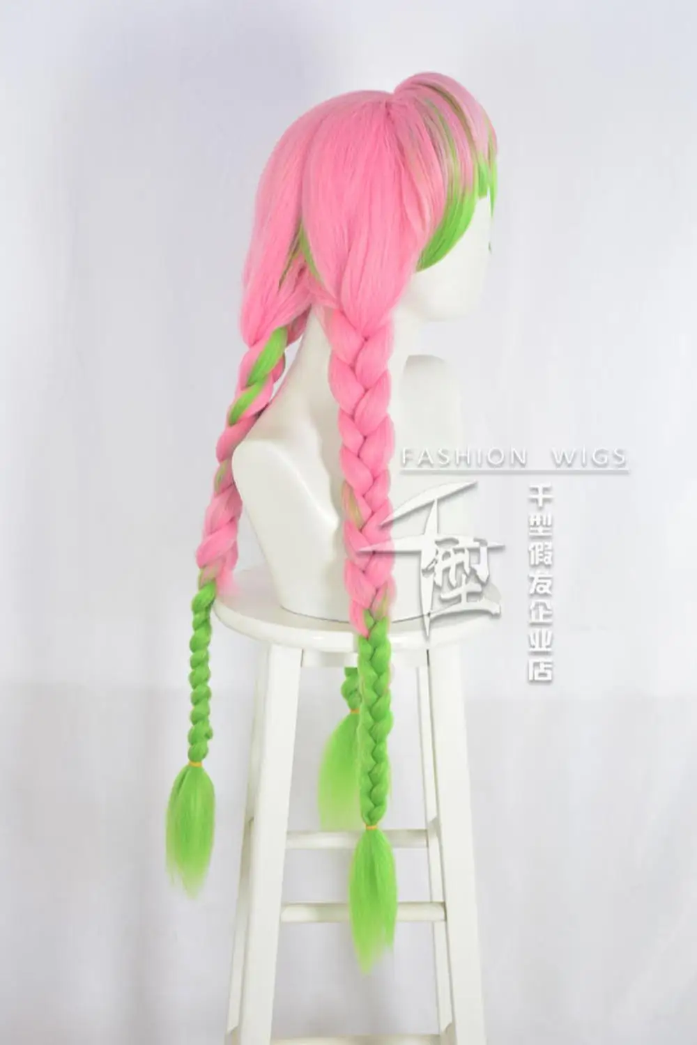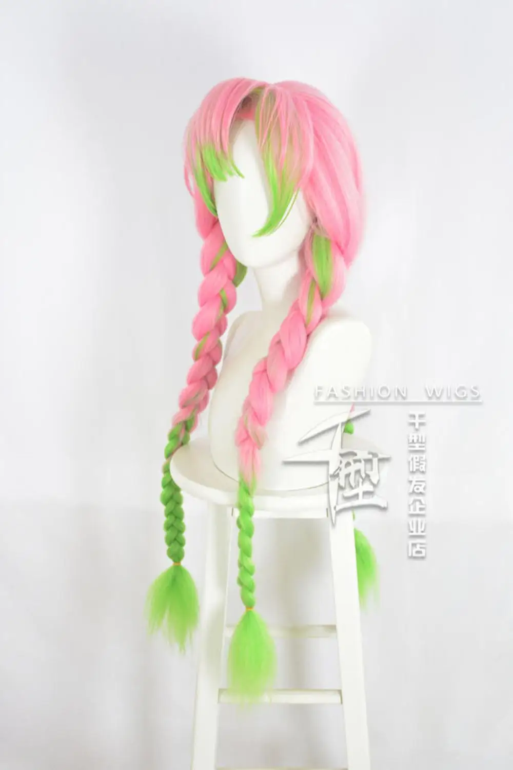 Парик Kanroji Mitsuri с двойным конским хвостом розовый зеленый парик для косплея + парик Кепка костюм Demon Slayer: Kimetsu no Yaiba Wigs 80 см