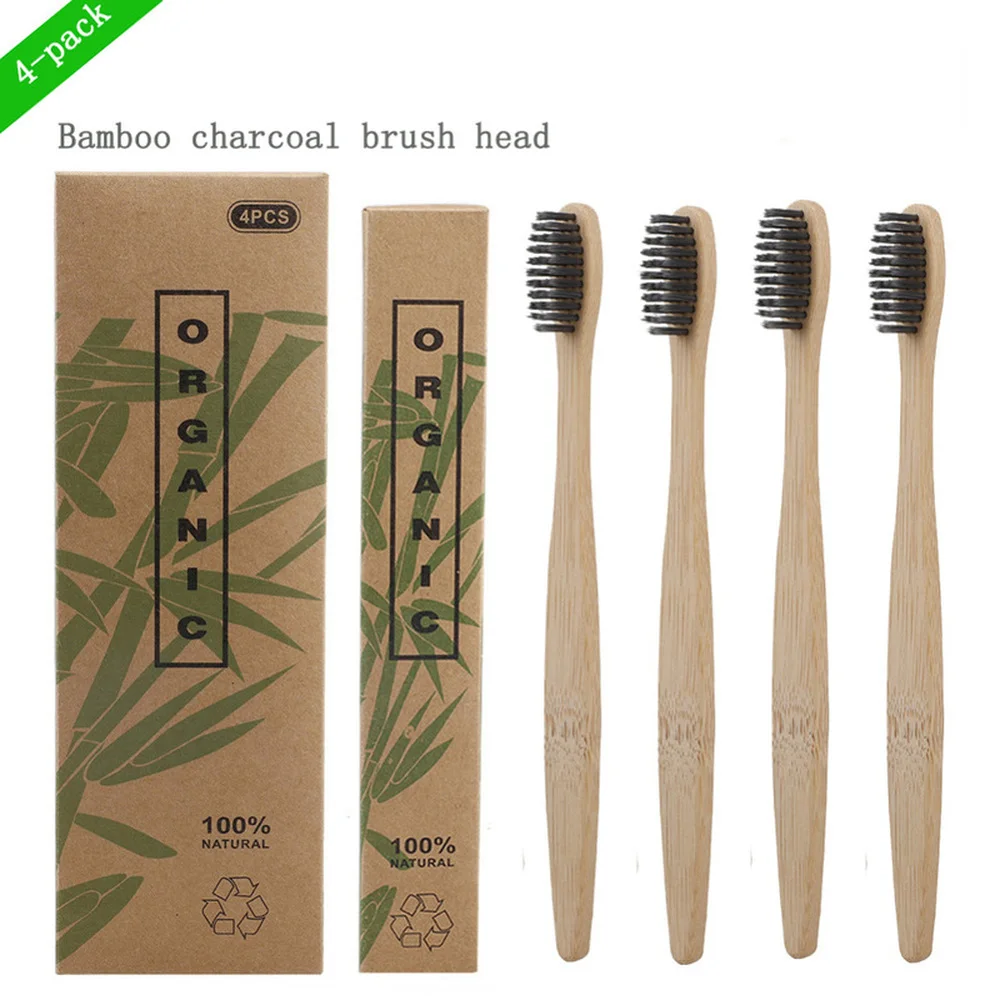 4 шт., натуральные биоразлагаемые зубные щётки из бамбукового угля