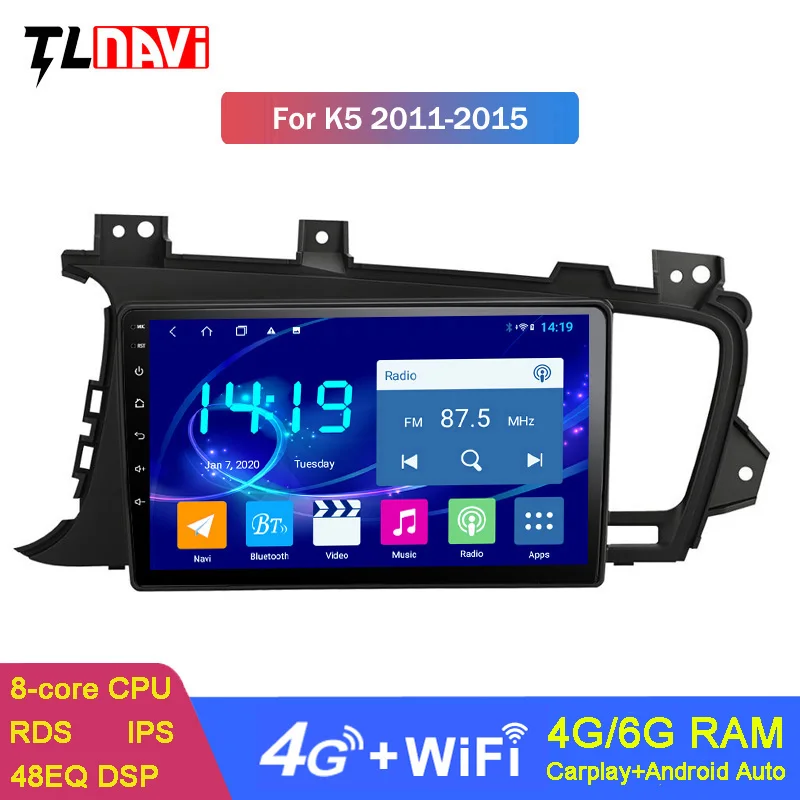 Автомобильный видеоплеер Android 10 для Kia K5 2011-2015, автомагнитола с GPS-навигацией, IPS DSP CARPLAY, 6 ГБ + 128 Гб, 9 дюймов