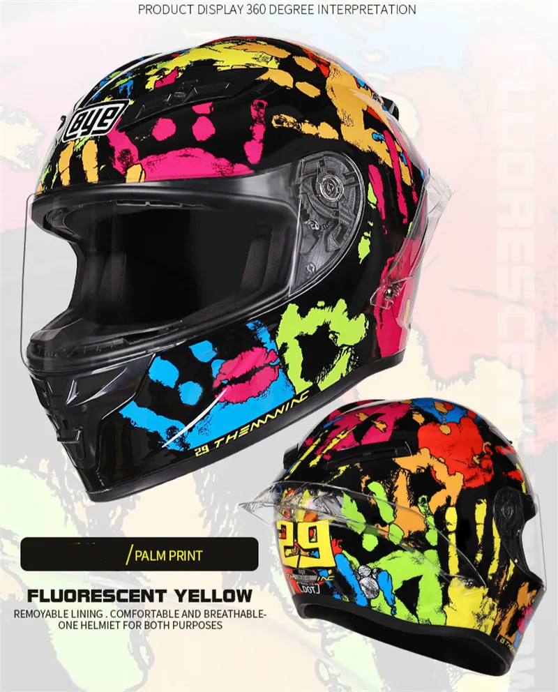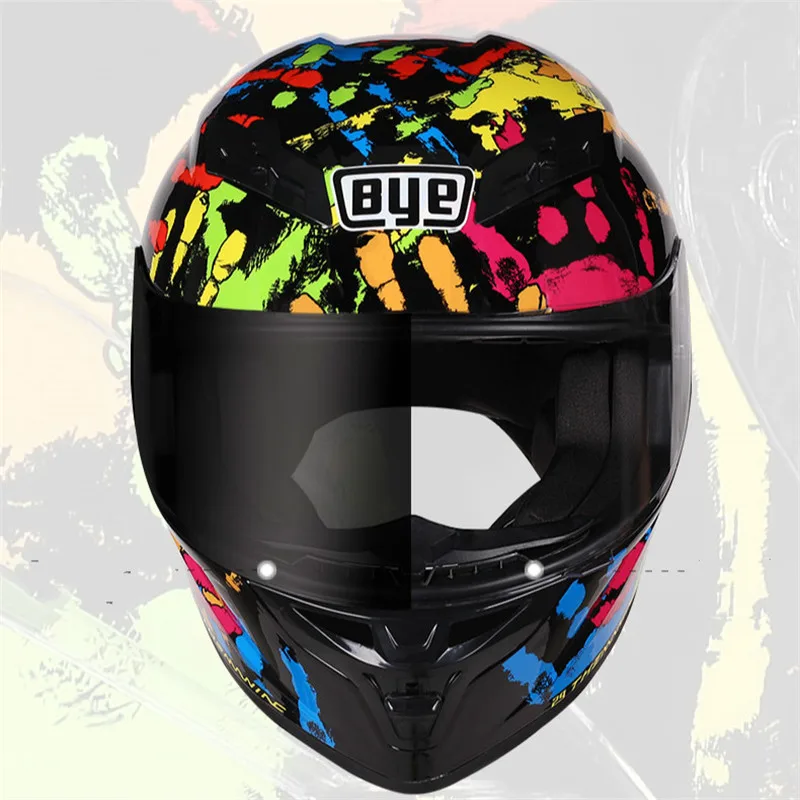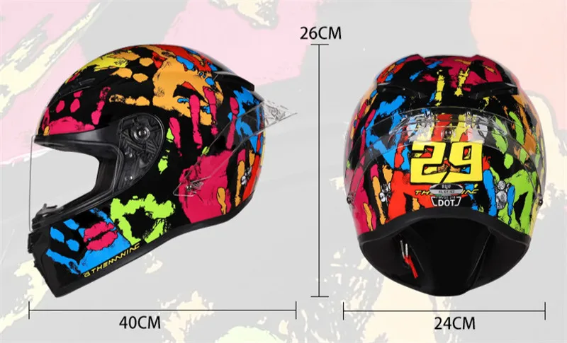 Мотоциклетный шлем на все лицо с рисунком ладони, профессиональный гоночный шлем, Радужный козырек в горошек, для мотокросса, для езды по бездорожью
