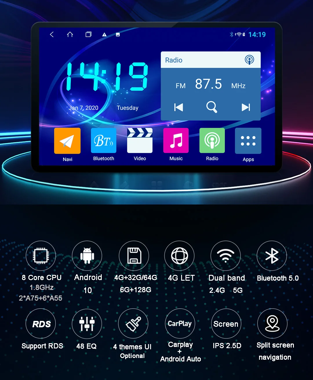 4. Встроенный беспроводной CarPlay, поддержка проводного Android AUTO.