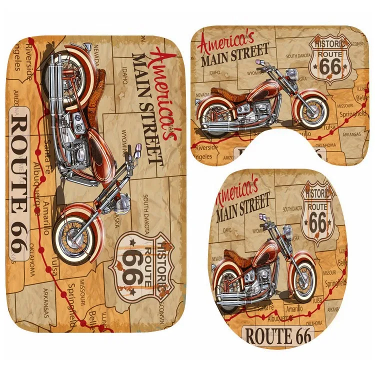 Старый американский Винтаж Route 66 мотоцикл постер напольный коврик для унитаза Route 66 коврики для ванной ковер для душевой комнаты коврики для ванной