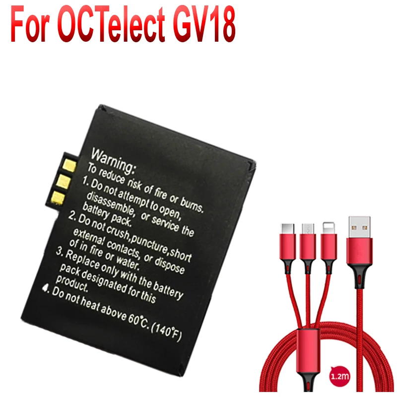 Батарея OCTelect GV18, Смарт-часы, телефон 550 мАч, батарея GV18, долгое время работы в режиме ожидания, батарея + USB кабель