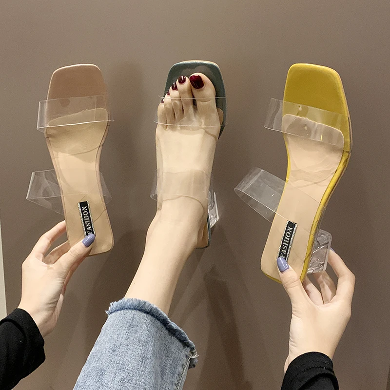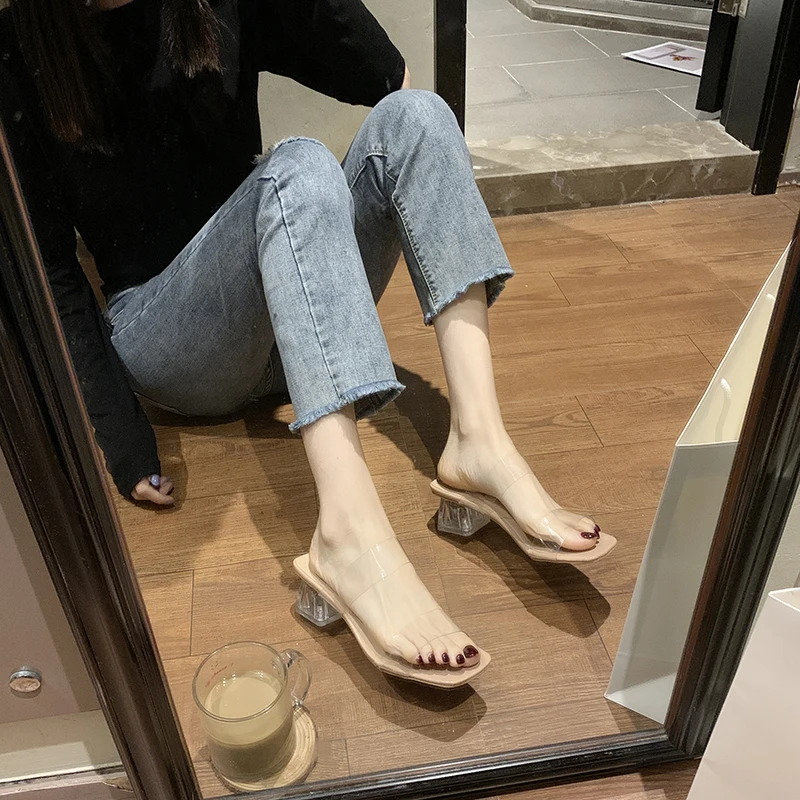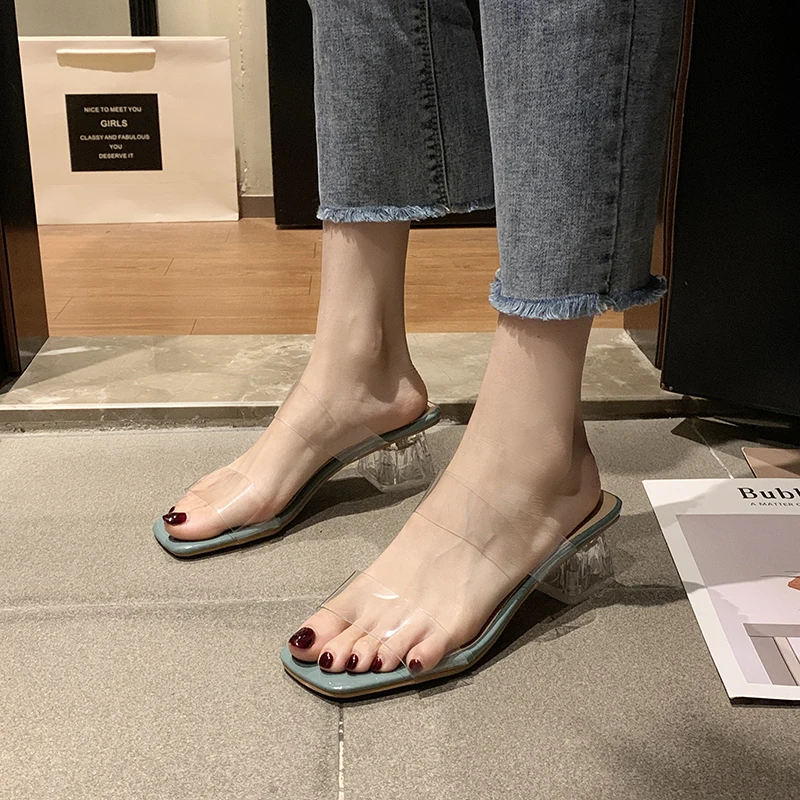 Женские прозрачные шлепанцы, на высоком каблуке, из ПВХ