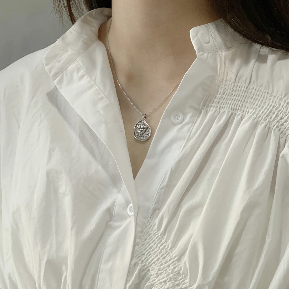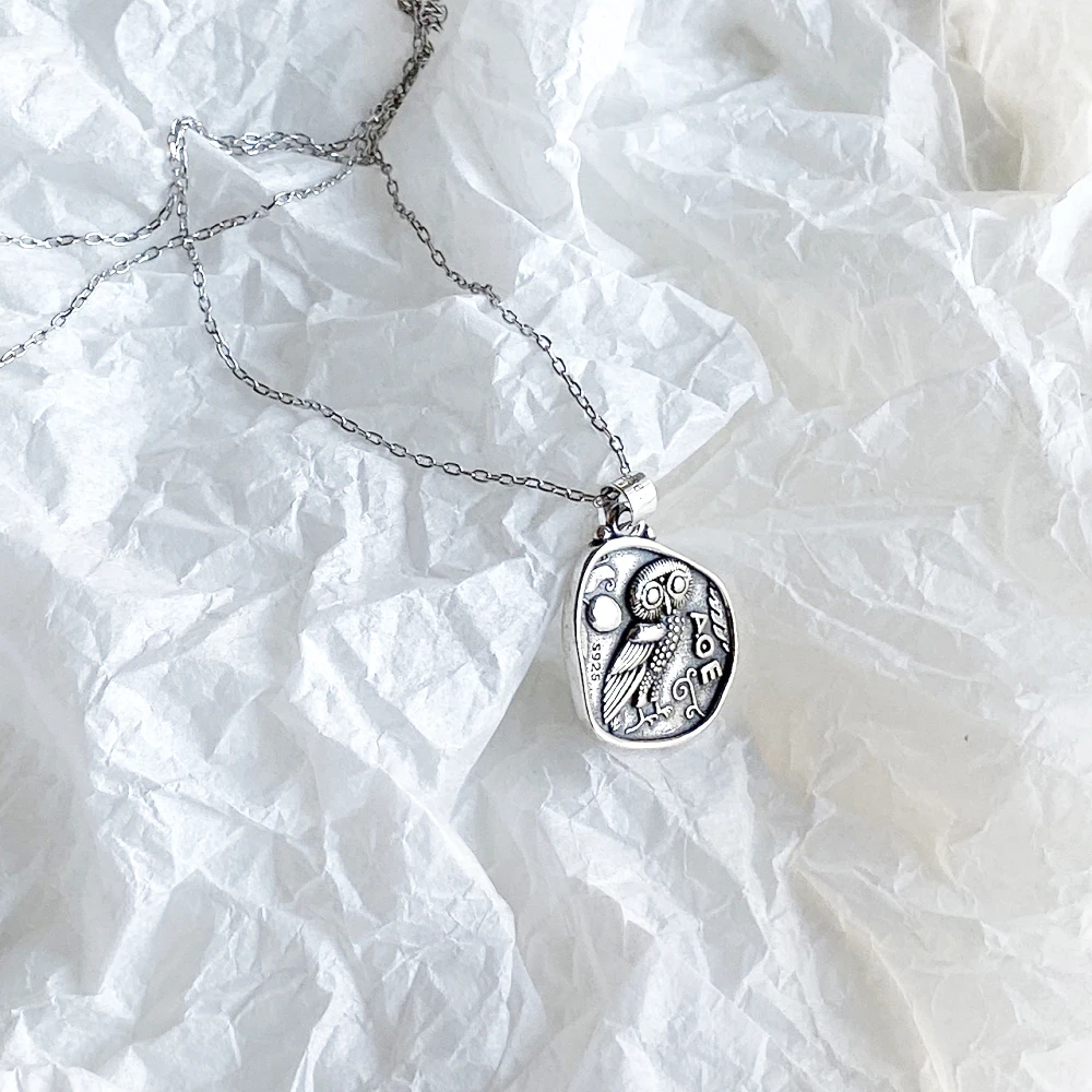 Подвеска в виде совы для молодых девушек, ожерелье из серебра 925 пробы с имитацией двух сторон