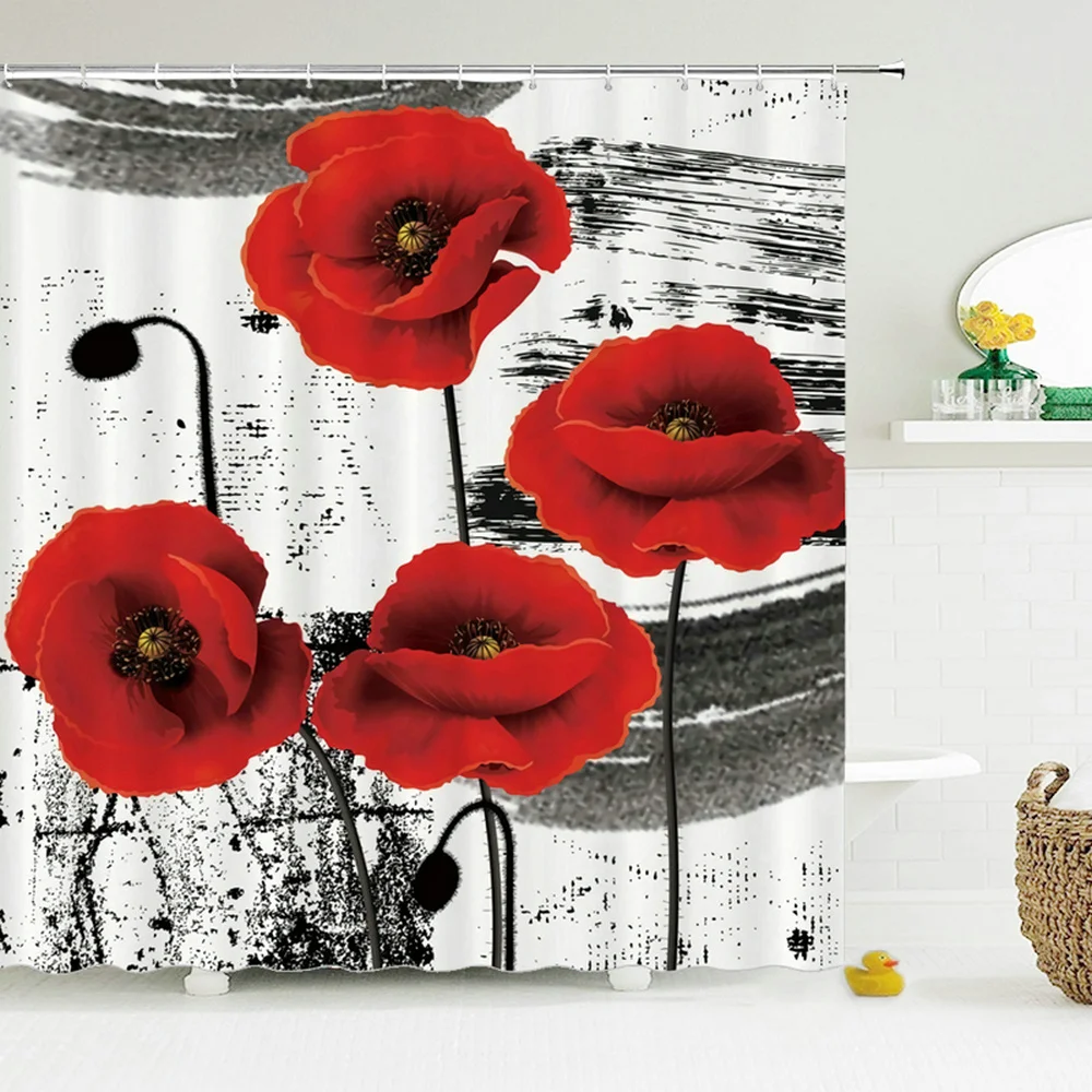 Водонепроницаемая занавеска для душа из полиэстера с 3D цветами