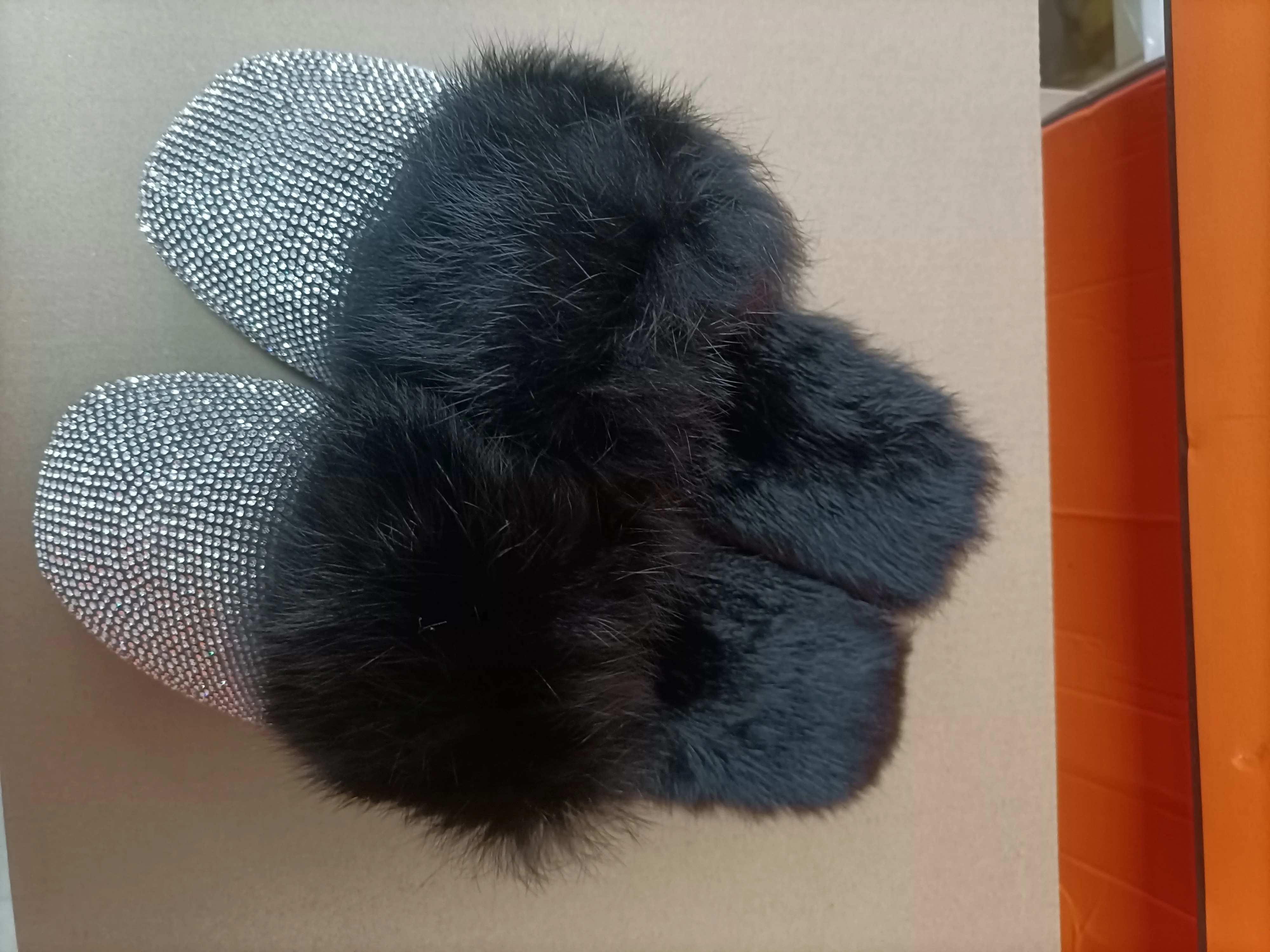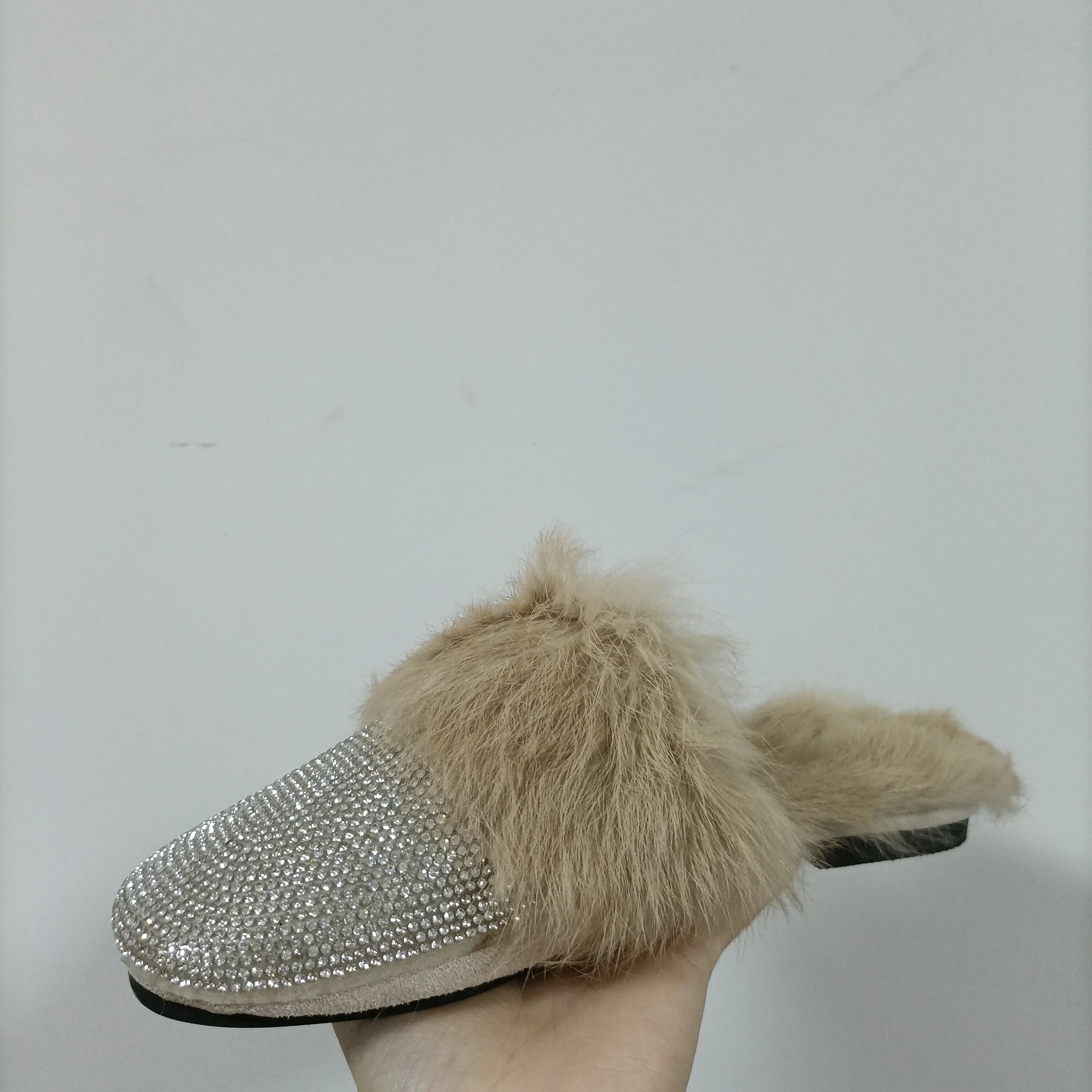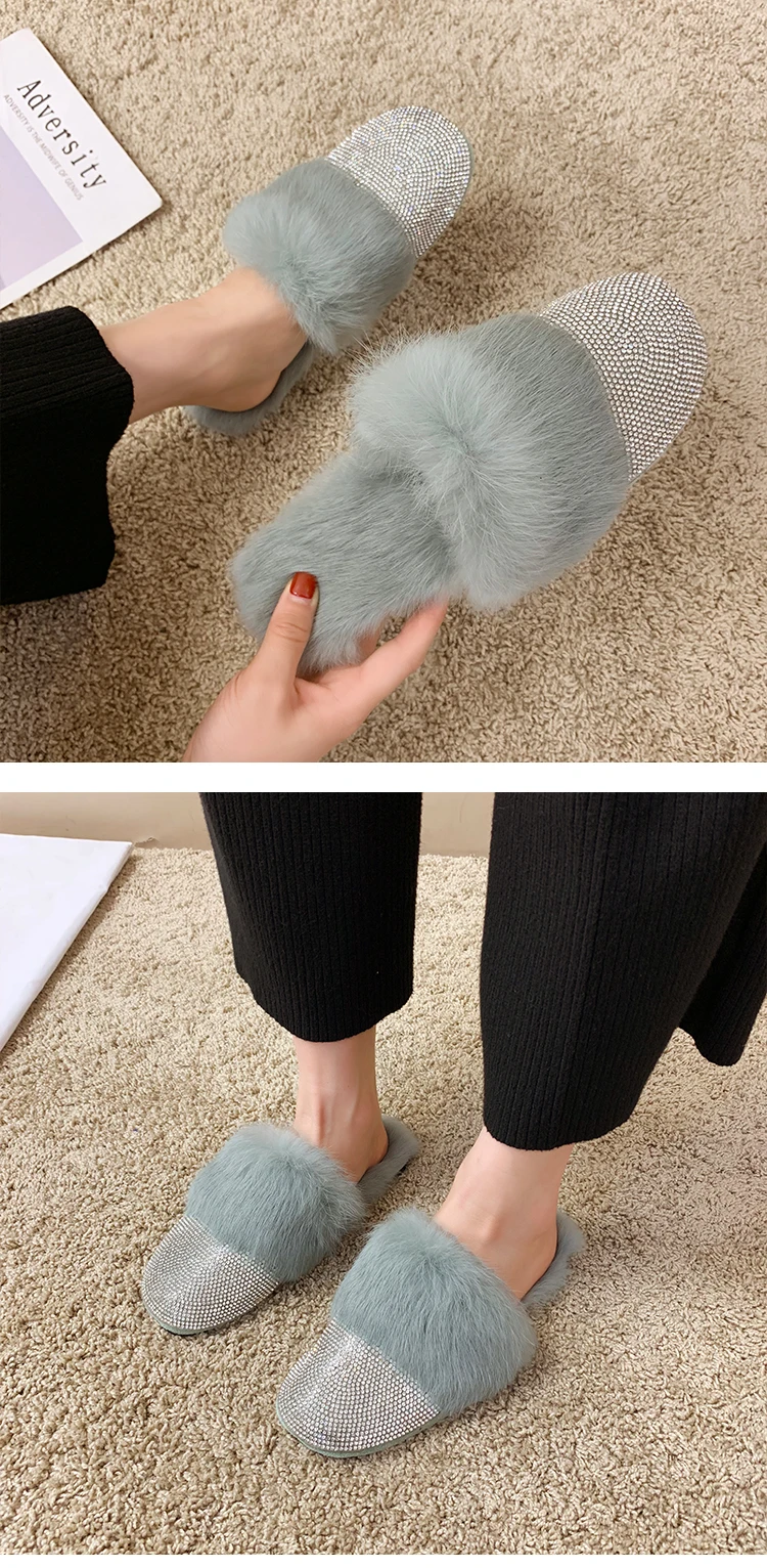 Женские шлепанцы большого размера, роскошные женские шлепанцы из искусственного меха, со стразами, тапочки без задника, женская обувь на плоской подошве, 2022