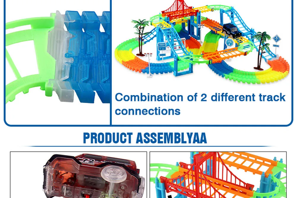 Светящийся гоночный трек с изгибом, гибкий светящийся в темноте, сб...