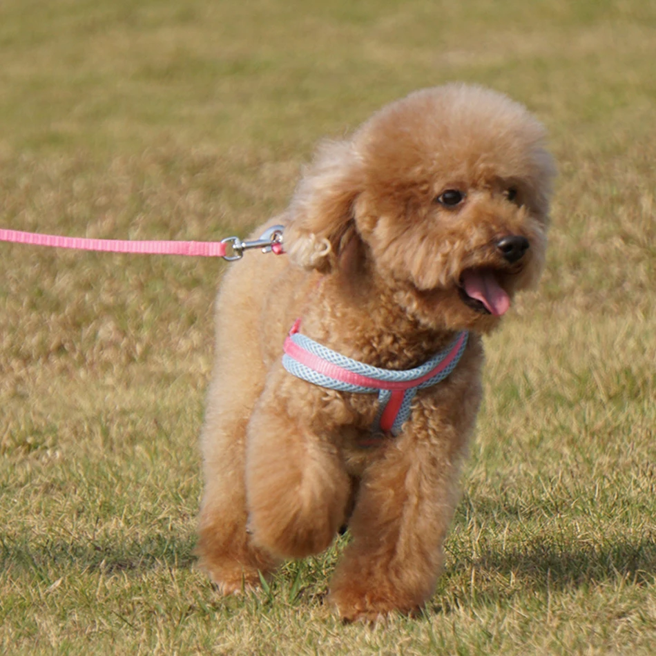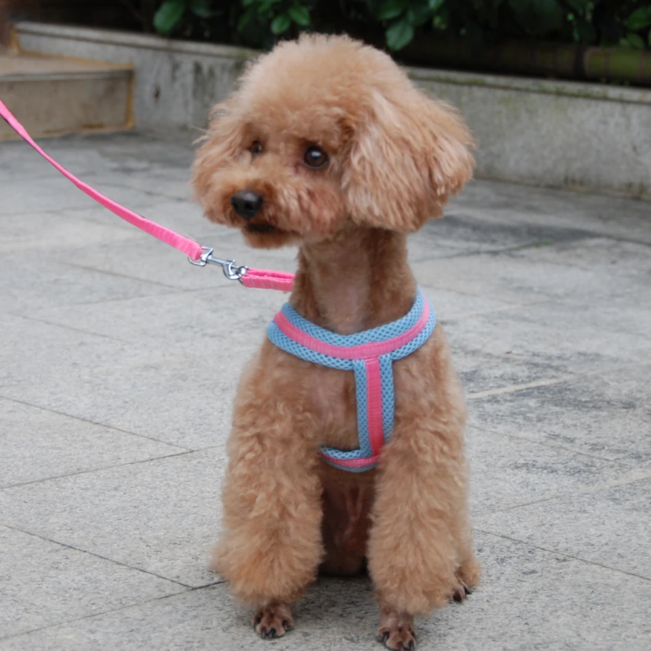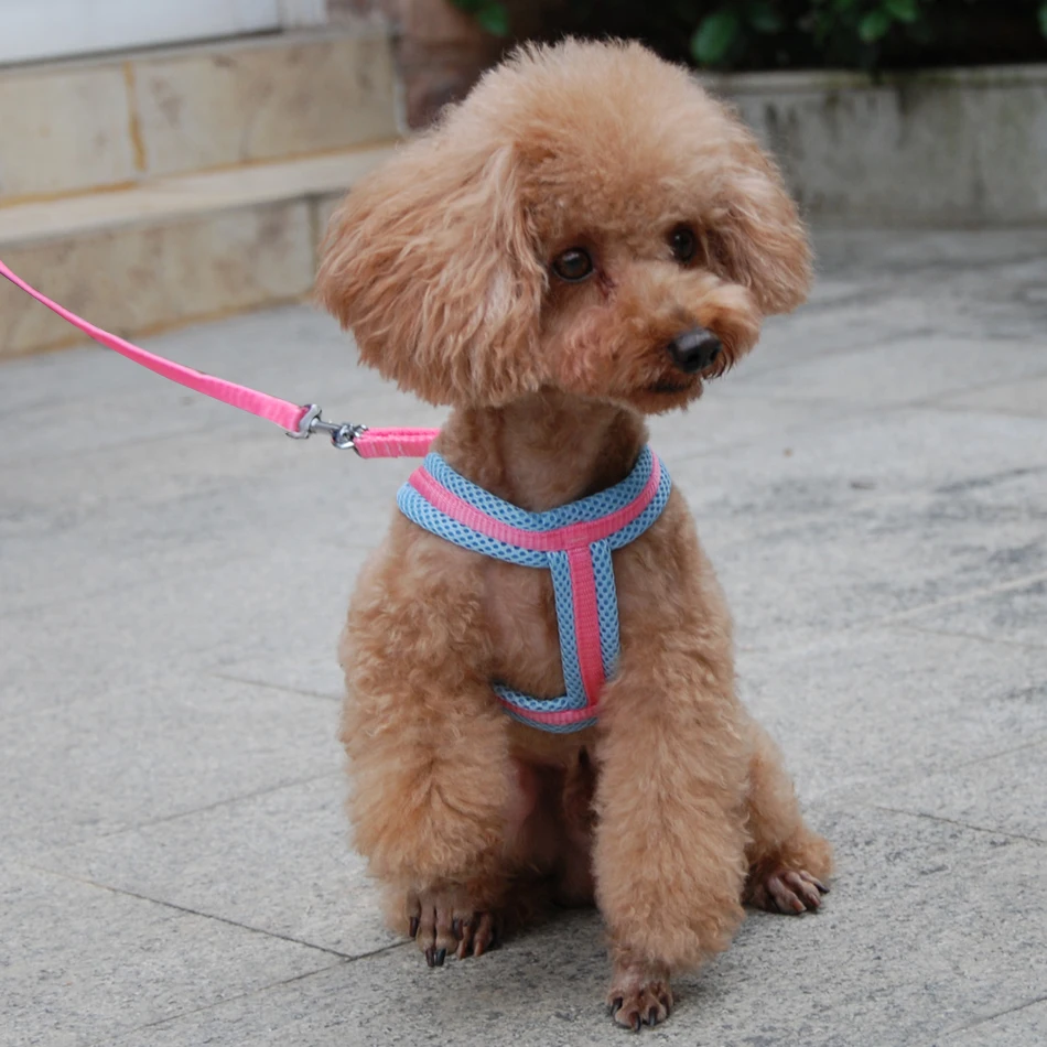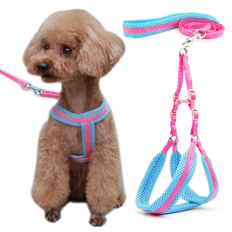 Шлейка-жилет для собак и кошек, однотонная дышащая сетка, товары для домашних животных, регулируемый ошейник для щенков, маленькая собака на открытом воздухе