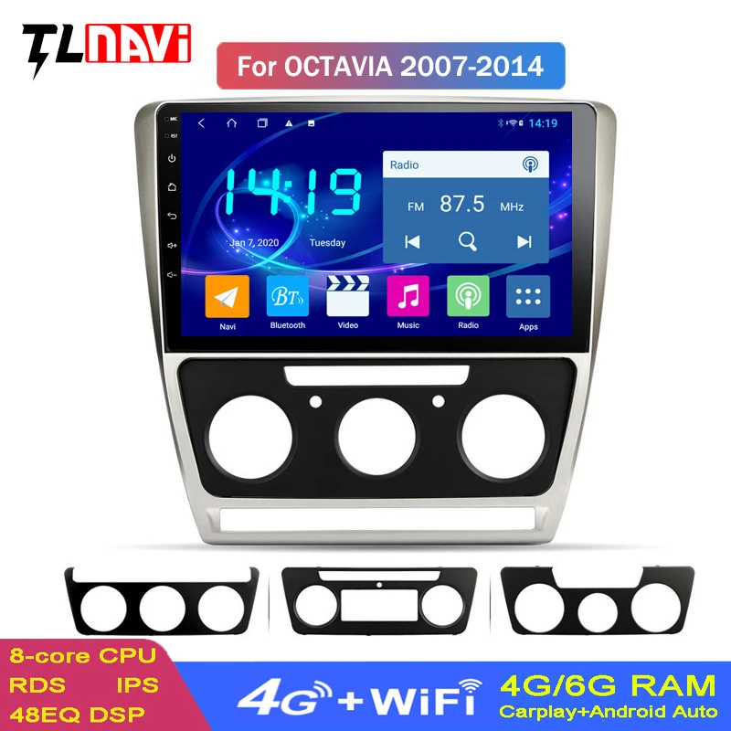 Автомобильный радиоприемник, мультимедийный плеер IPS DSP CARPLAY, 6 ГБ + 128 Гб, 10,1 дюйма, Android 10, для Skoda Octavia 2007-2014, GPS-навигация