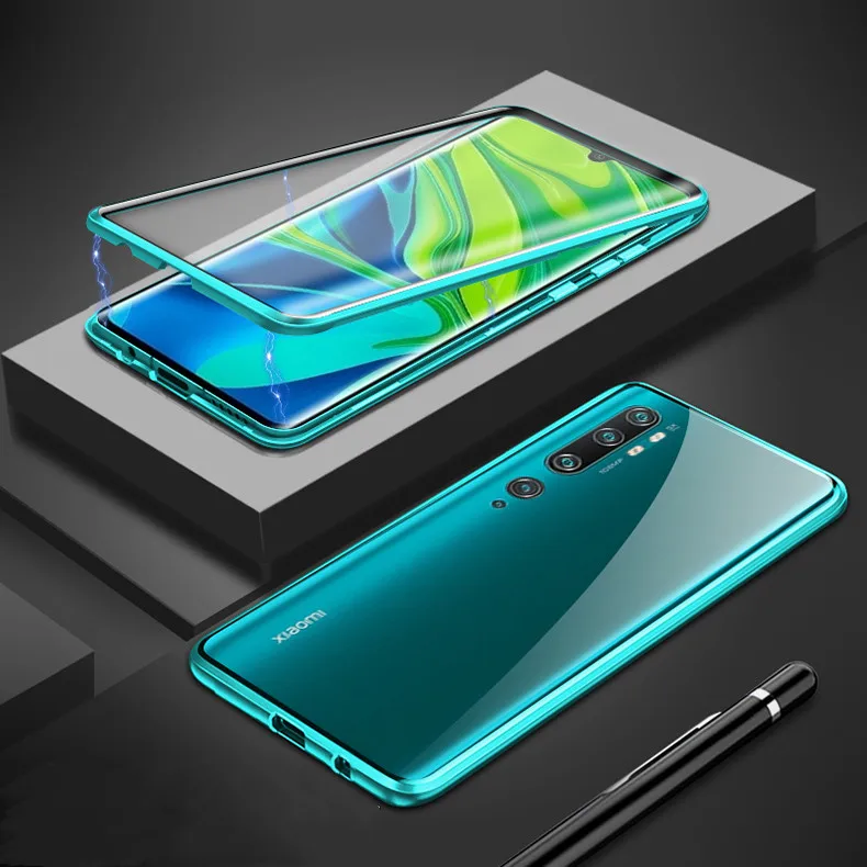 Магнитный адсорбционный металлический чехол для Xiaomi Mi Note 10 закаленное стекло магнит задняя крышка для Xiaomi Mi Note 10 Pro Чехол Для Телефона