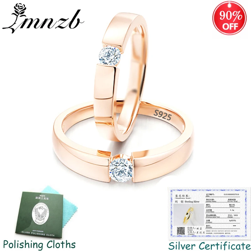 Мужские и женские обручальные кольца LMNZB, обручальные кольца из серебра 100% пробы с цирконием 925 карата, LZR16