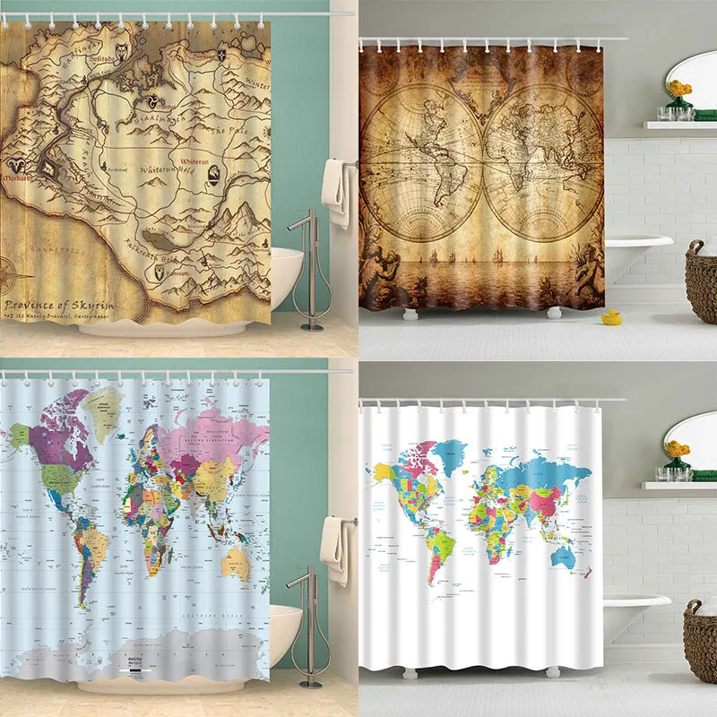 Занавеска для душа с картой мира, водонепроницаемая моющаяся штора из полиэстера, с 3D принтом, в ванную комнату, 12 крючков