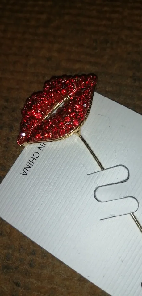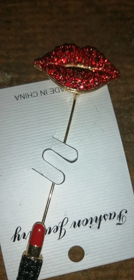 1 шт. кристалл красный броши в виде губной помады Эмаль Булавка для женщин Аксессуары Булавки Стразы лацкан булавка поцелуй красный ювелирные изделия