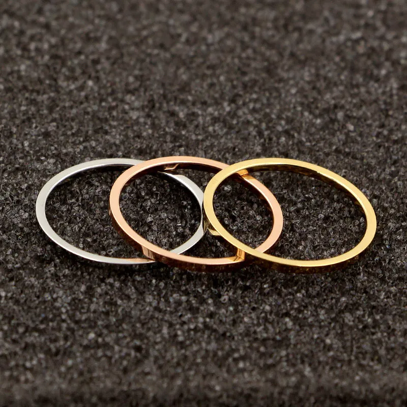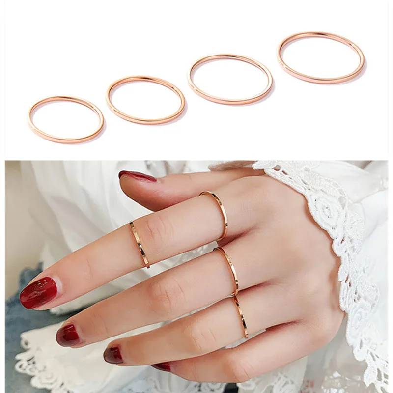 1 мм Акция титановая сталь розовое золото цвет анти-аллергии гладкое обручальное кольцо для женщин мужчин модные ювелирные изделия KK004