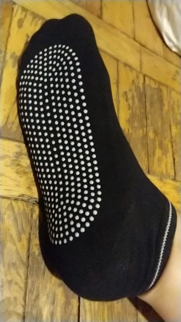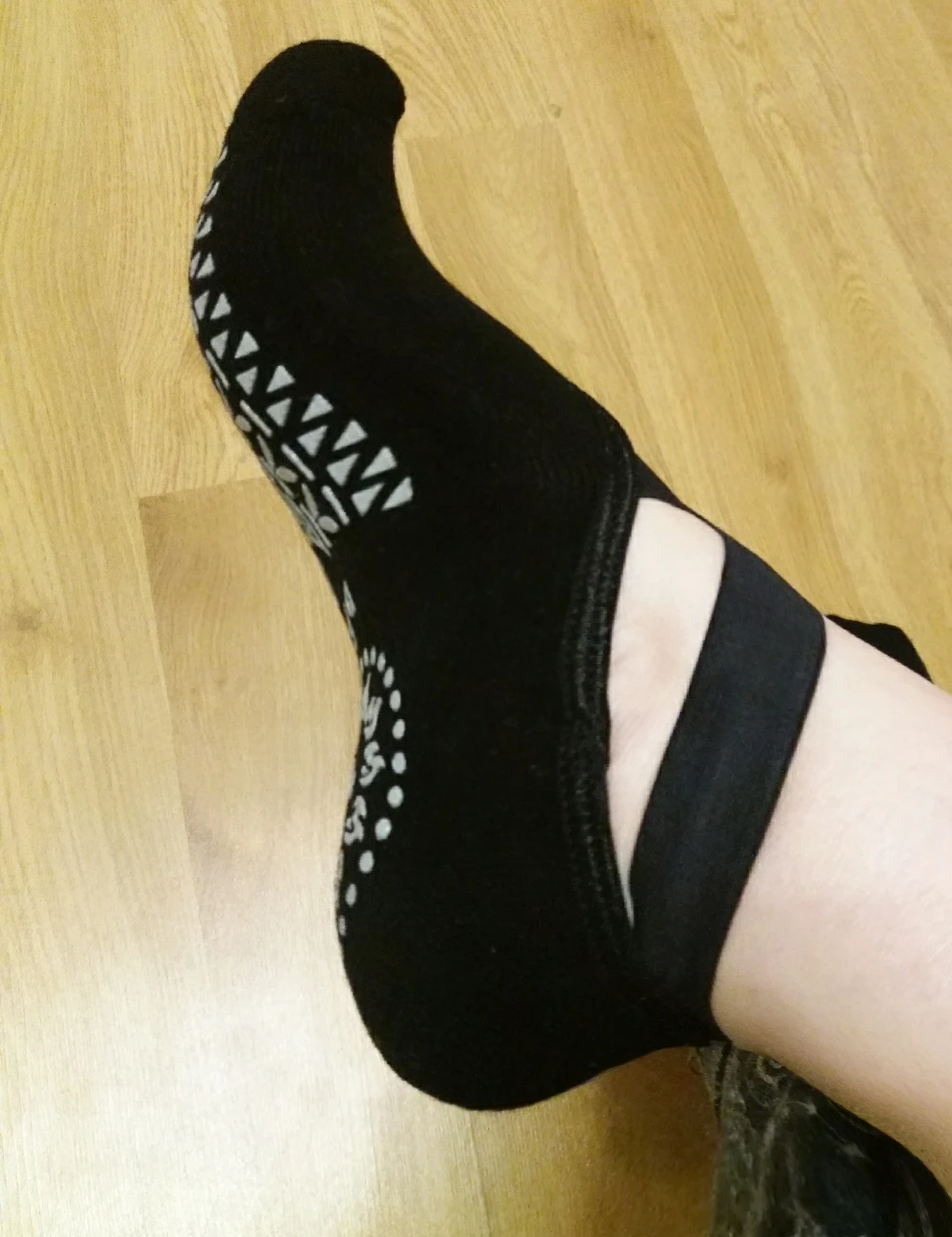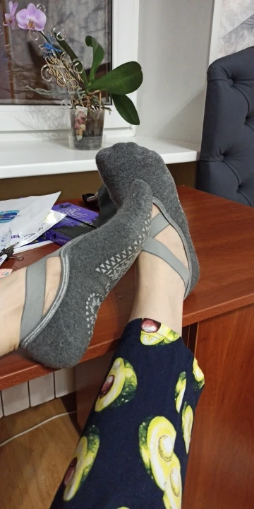 Очень крутые носки для занятия йогой! Я себе брала для стретчинга, так как в чешках не комфортно. Зато в этих носках просто супер! Резинки сверху ногу не сдавливают, вполне комфортно ощущаются. И у них большой плюс, что они из Толстой ткани