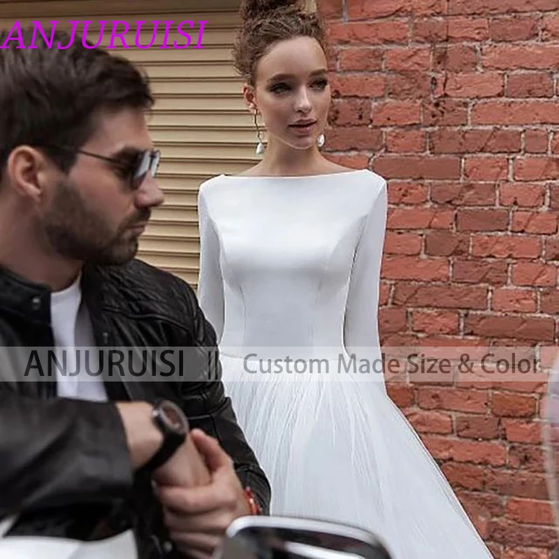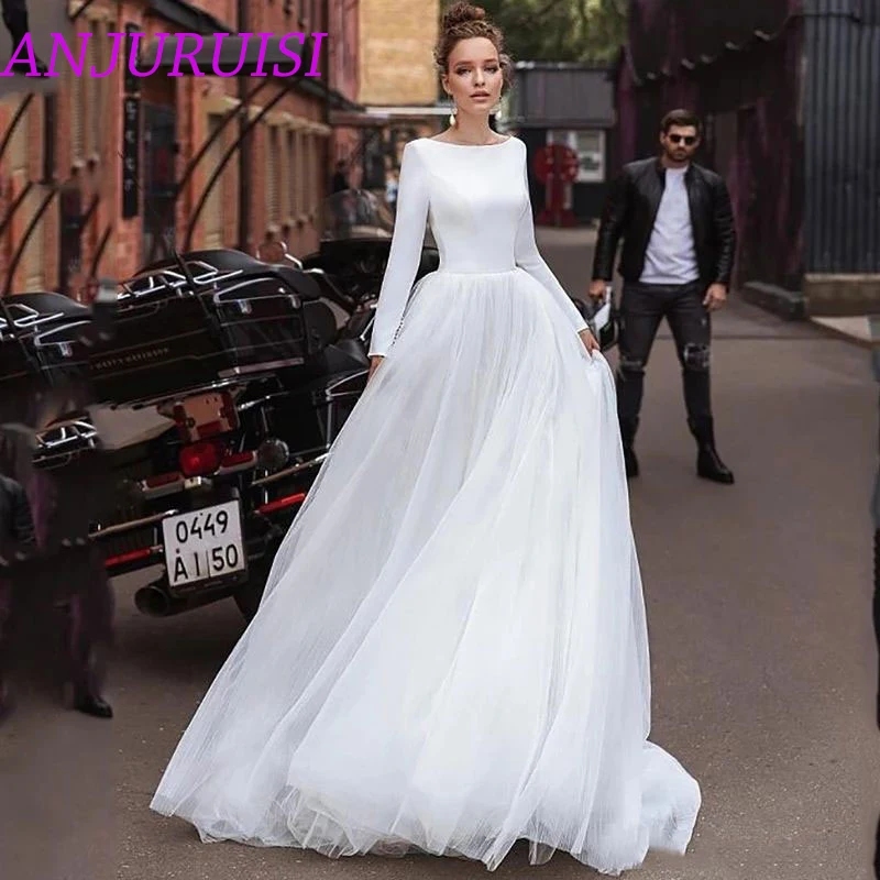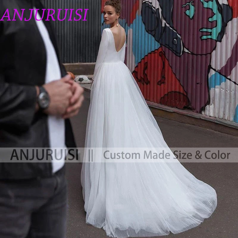 Женское свадебное платье ANJURUISI, простое ТРАПЕЦИЕВИДНОЕ платье из тюля с длинными рукавами, 2020