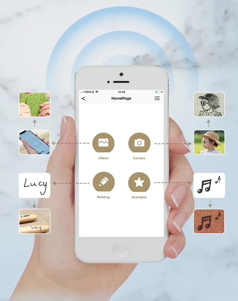 Можно выбрать любую гравировку изображения в телефоне или изменить текст в приложении, покрасить гравировку.
