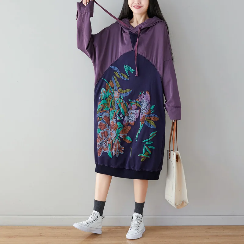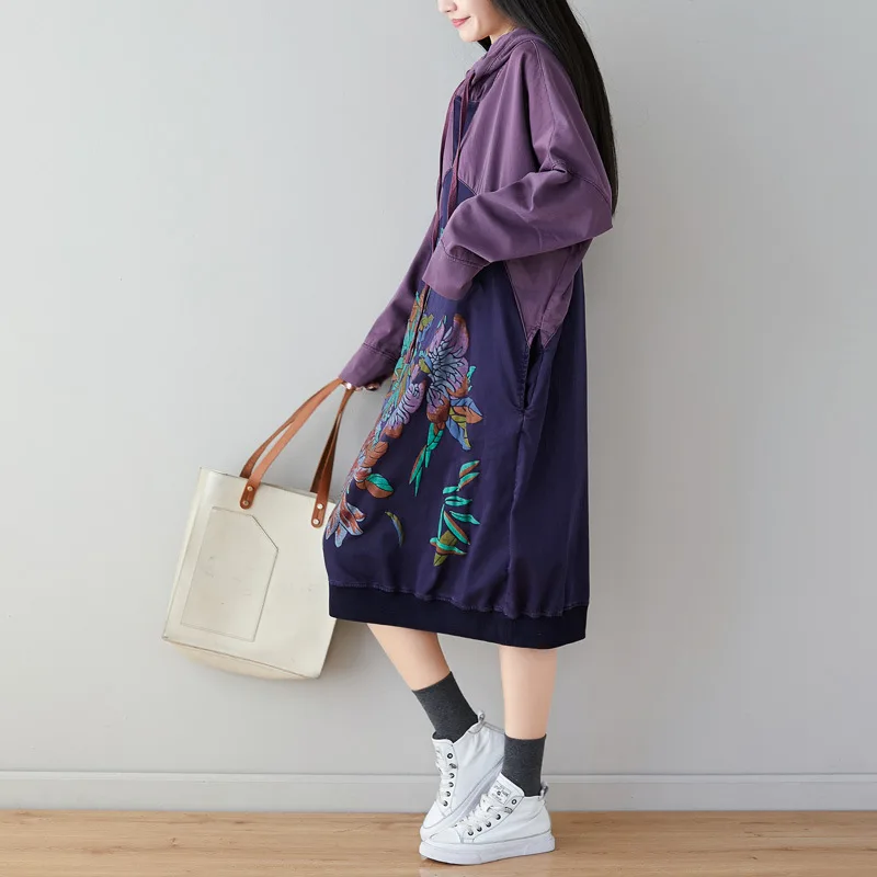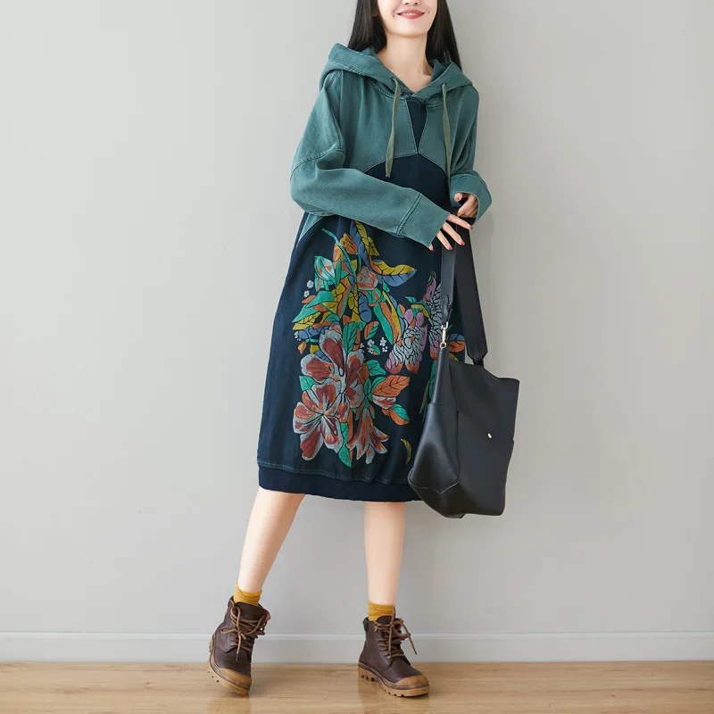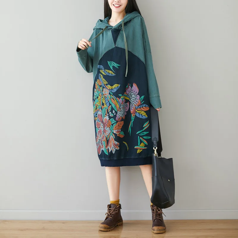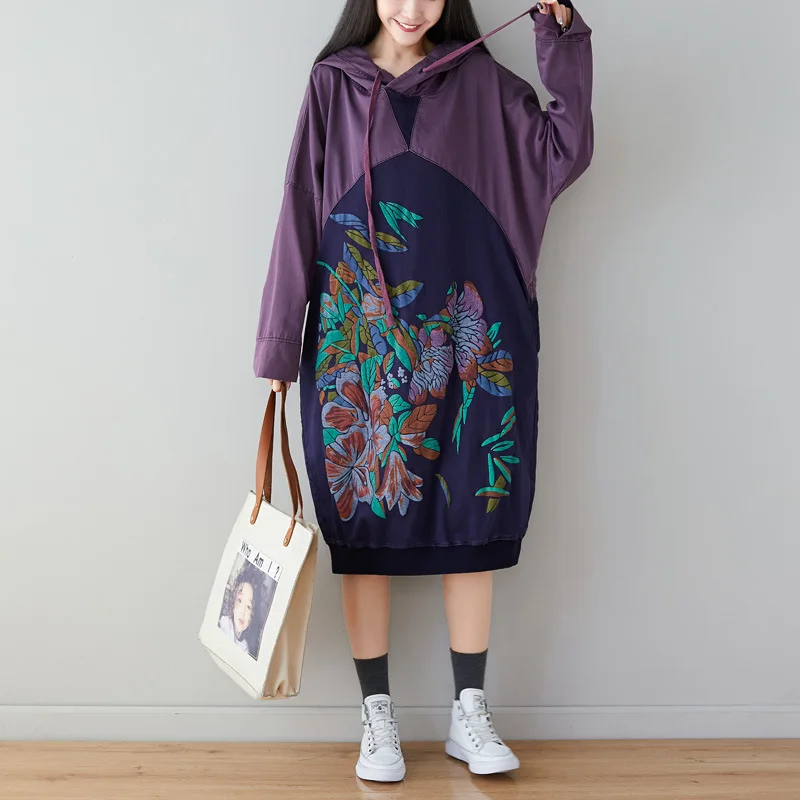 Платье женское длинное с цветочным принтом, свитшот с капюшоном, пуловер в стиле оверсайз, винтажное пальто с рукавом летучая мышь в японском стиле, весна-осень 2020