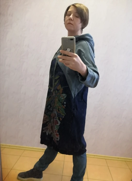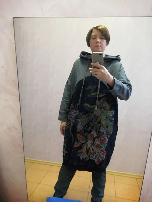 Очень довольна! Полностью соответствует описанию. Это оверсайз, думаю, идеально в качестве домашней зимней одежды или же годится для прогулок. Ткань не тонкая, без "начеса" с изнанки . Выглядит стильно и очень комфортно. Большое спасибо производителю и продавцу. Рекомендую покупать.