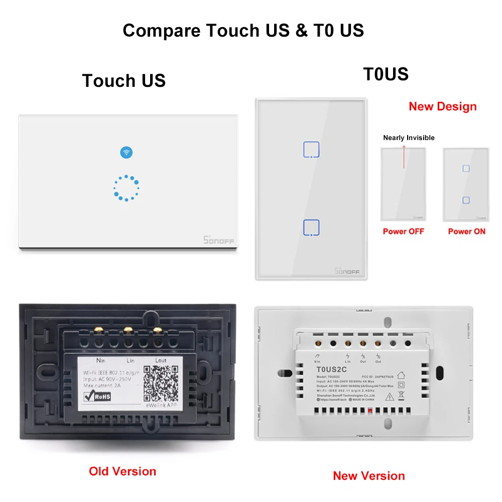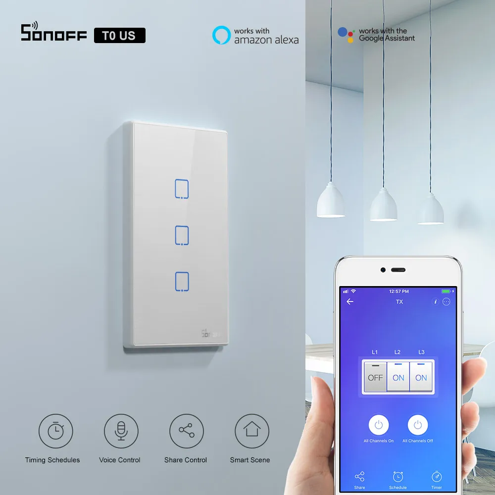 Itead Sonoff T0US Wifi умный светильник переключатель 120 Тип 123 TX настенных выключателей Дистанционное Управление работает с Alexa Google Home работать с Алиса
